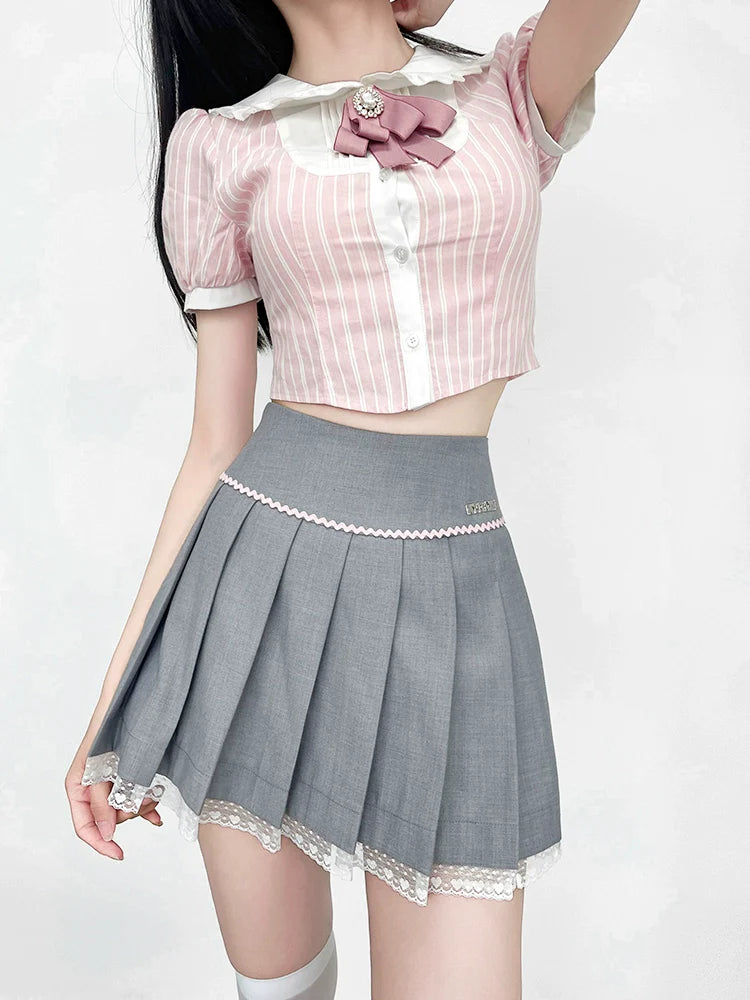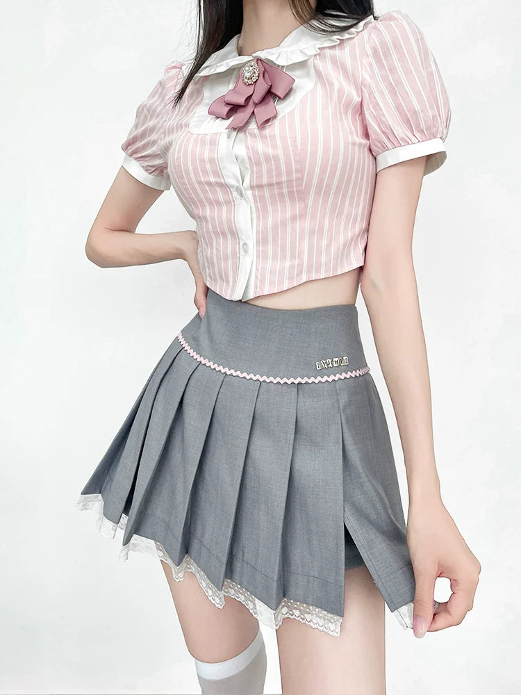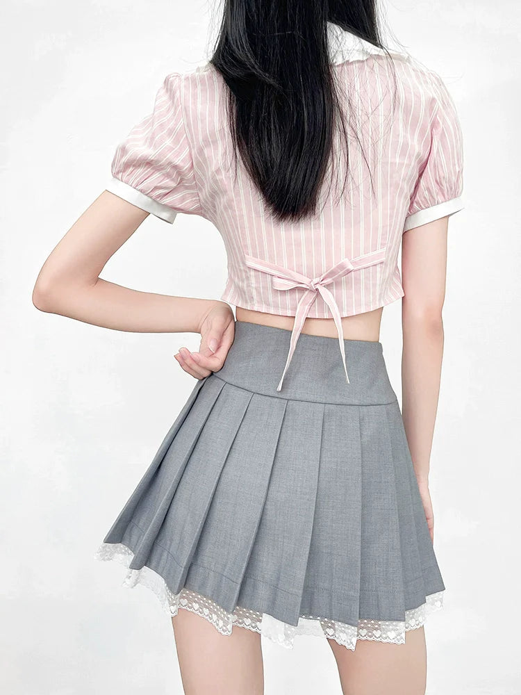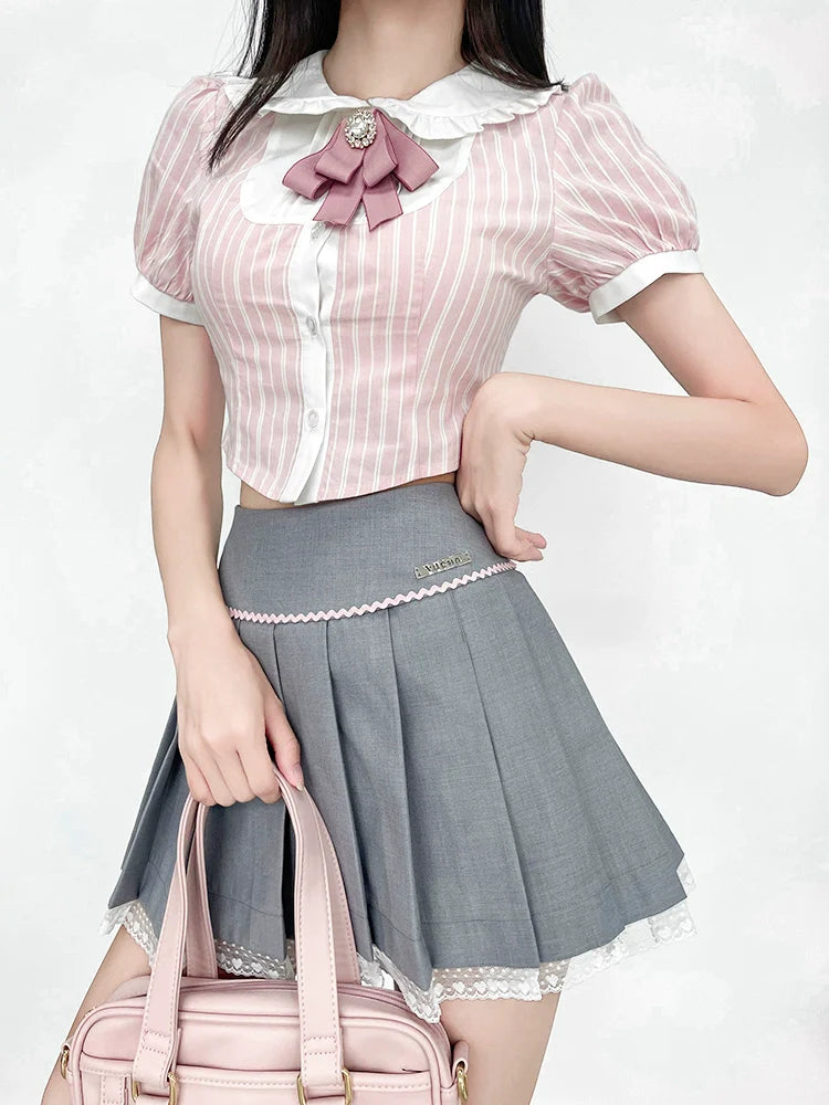 Peppen Sie Ihren Stil mit unserem gestreiften Top Ribbon auf. Die süßen Puffärmel verleihen Ihrem Outfit einen Hauch von Niedlichkeit. Setzen Sie mit diesem bezaubernden Top ein Statement.