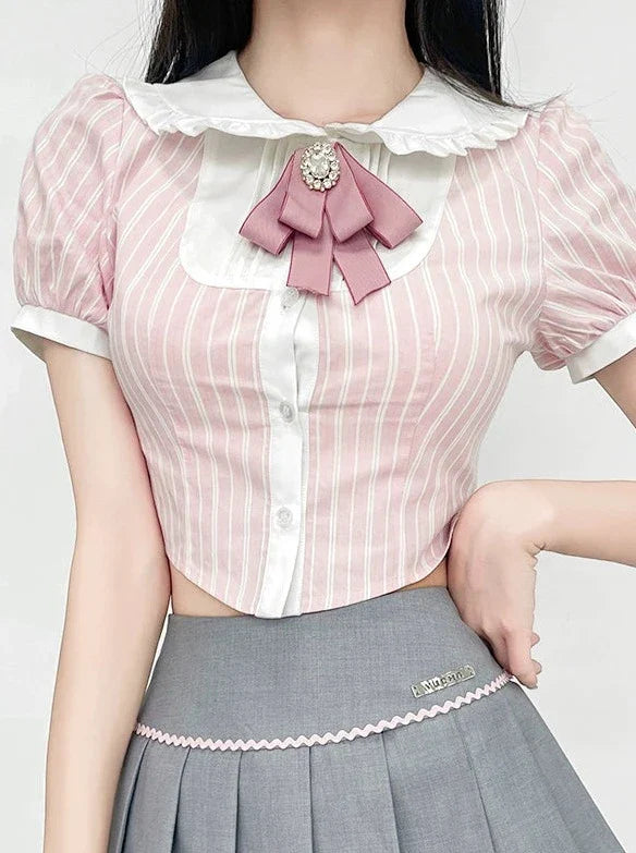 Gestreiftes Top mit Schleife und Puffärmeln, süß