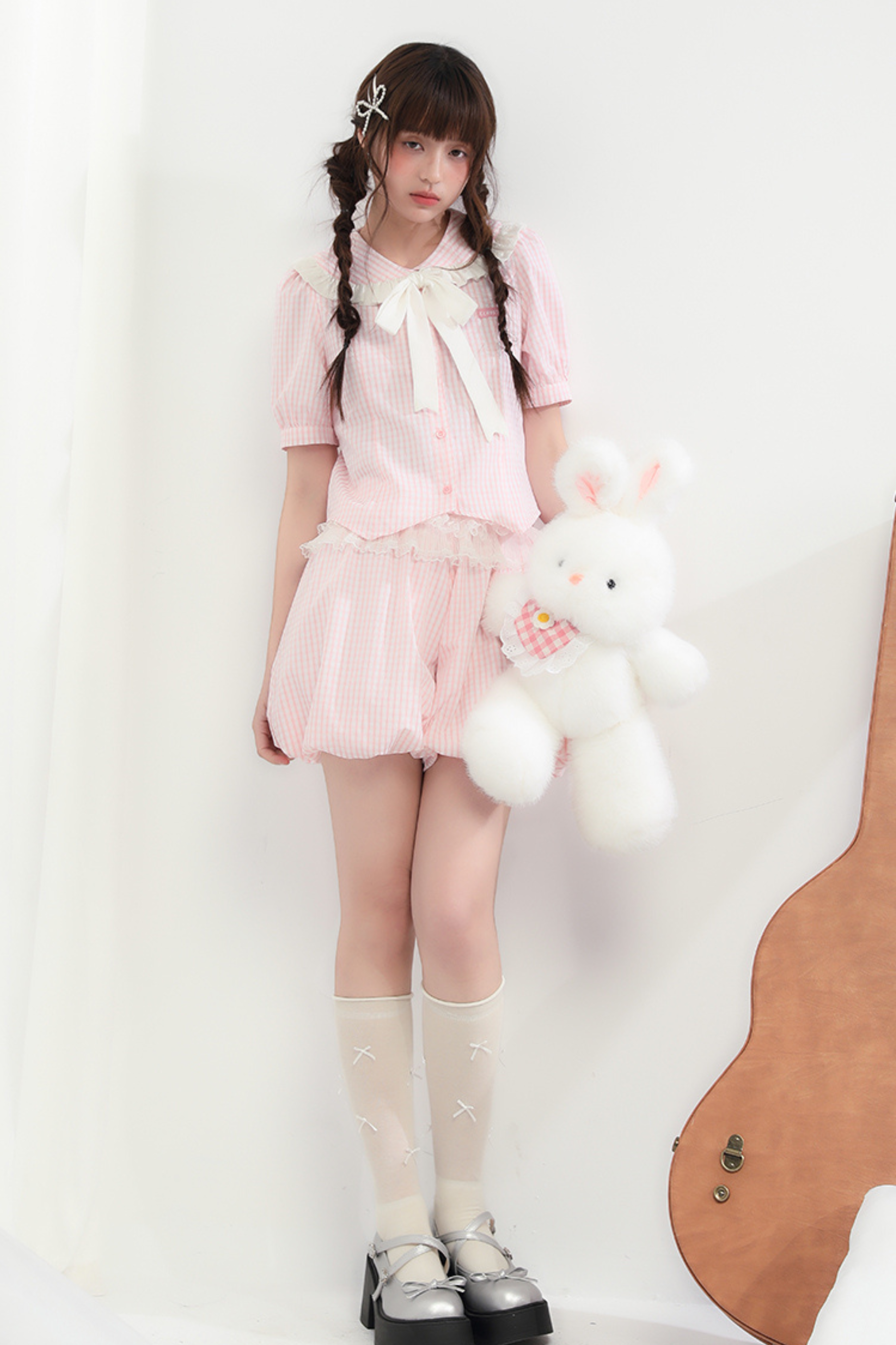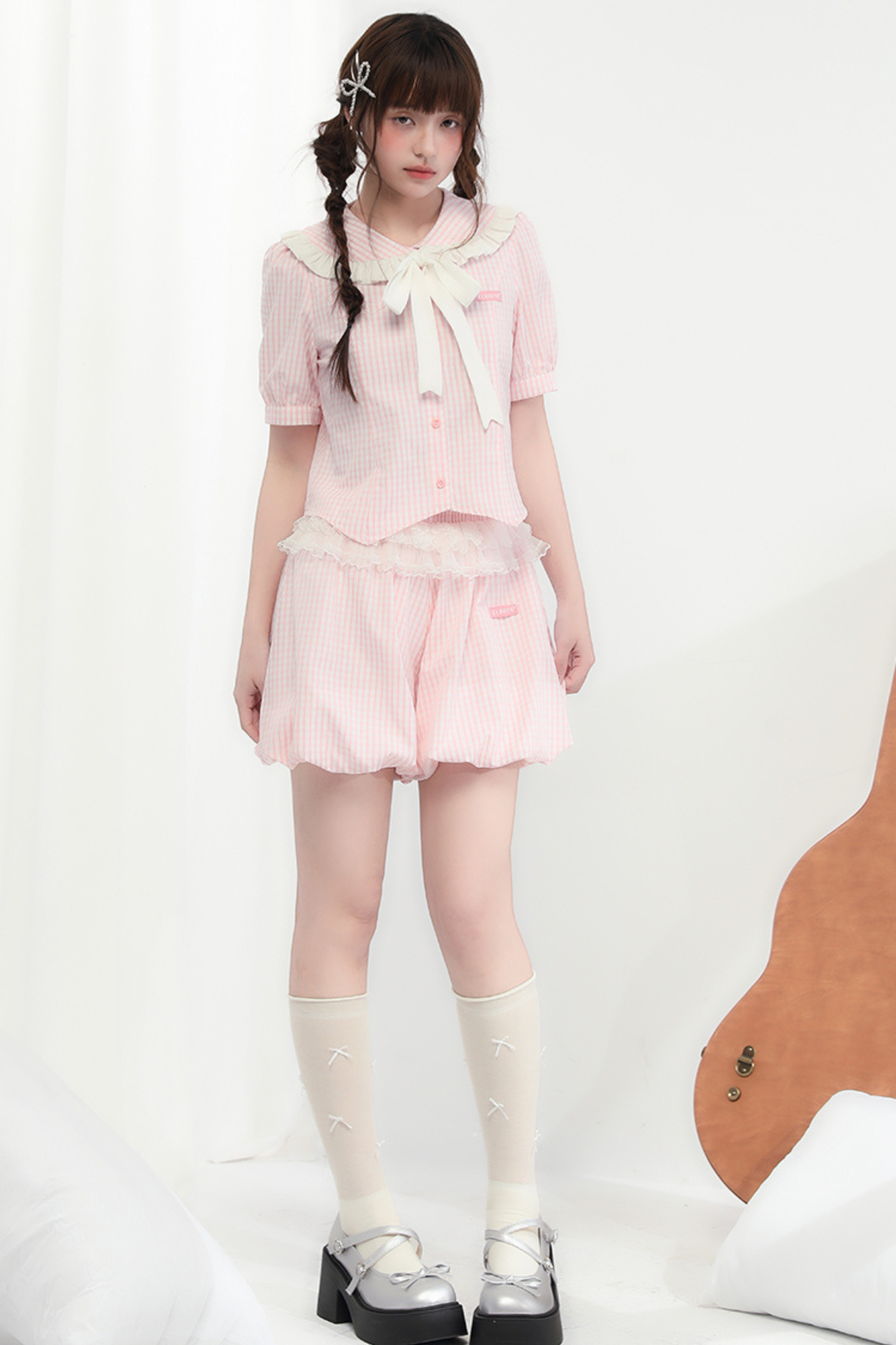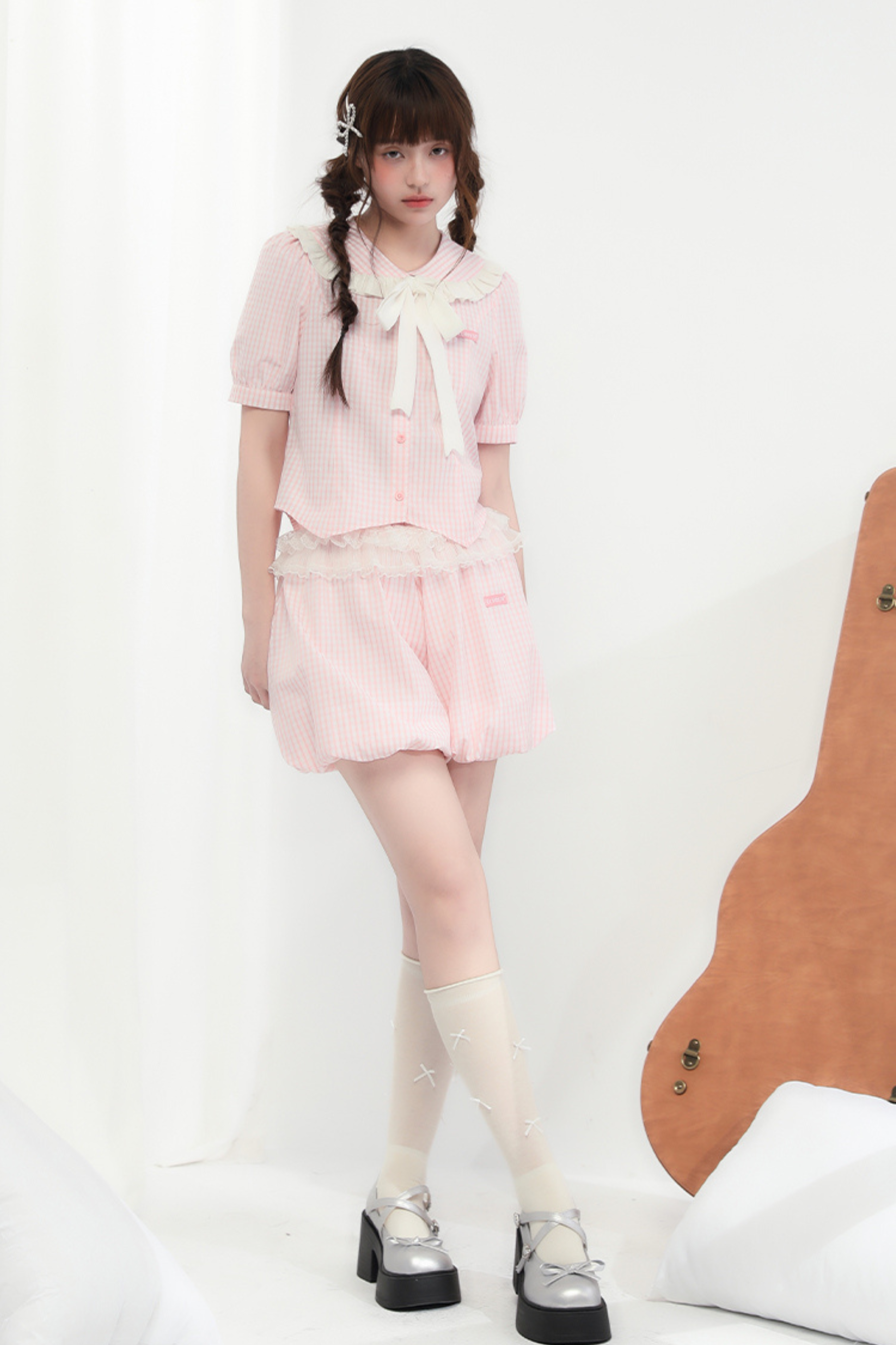 ❤Peachy Bubbles gestreiftes Spitzenoberteil für Puppen + Ballonhose❤