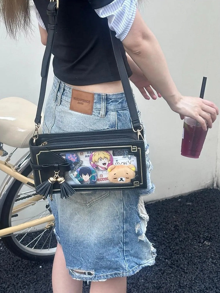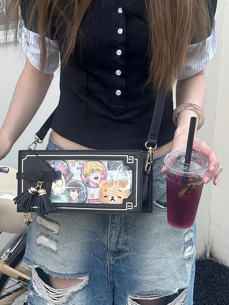 Stil Tasche Muster Akzent Schwarz Bogen Ita Floral PU Cheongsam Fringe Mit