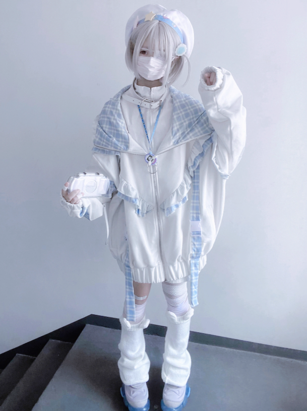 Weiß-rosa Lolita-Haube-Halsband