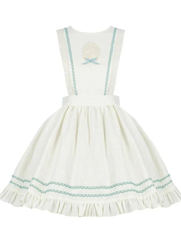 Blau-weißes Old School Lolita Fashion Kleid mit Schleife und Details, JSK-Set