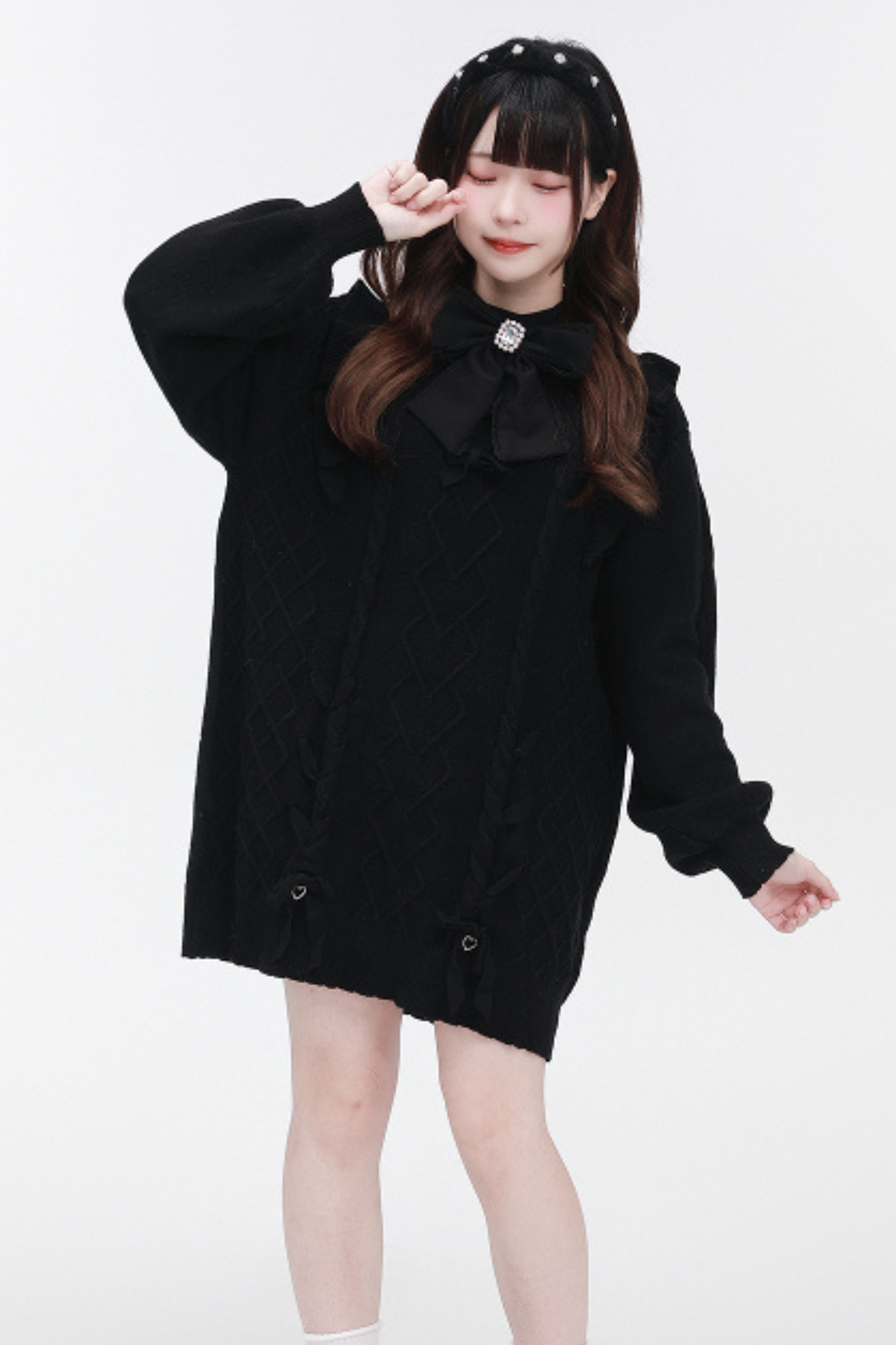 Schwarz-weißes Old School Lolita Fashion Kleid Bowknot Lolita JSK Set