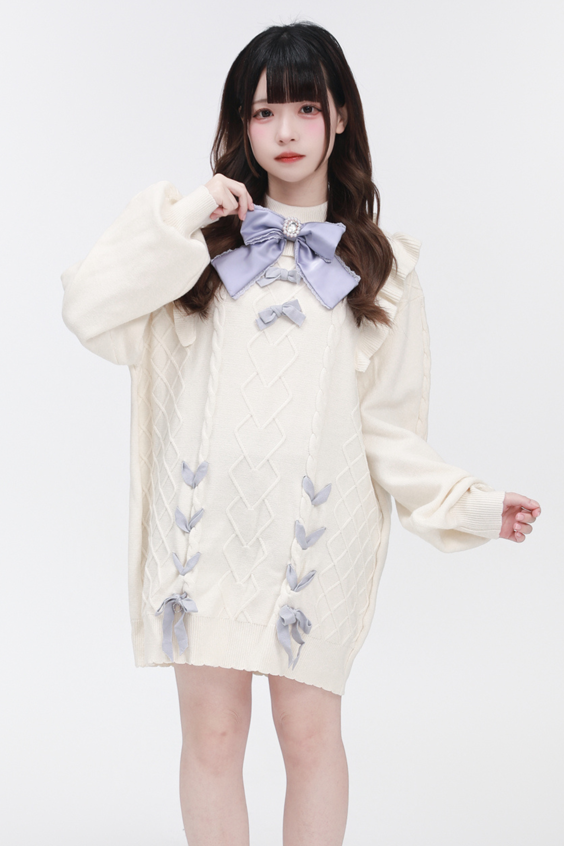 Blau-weißes Old School Lolita Fashion Kleid mit Schleife und Details, JSK-Set