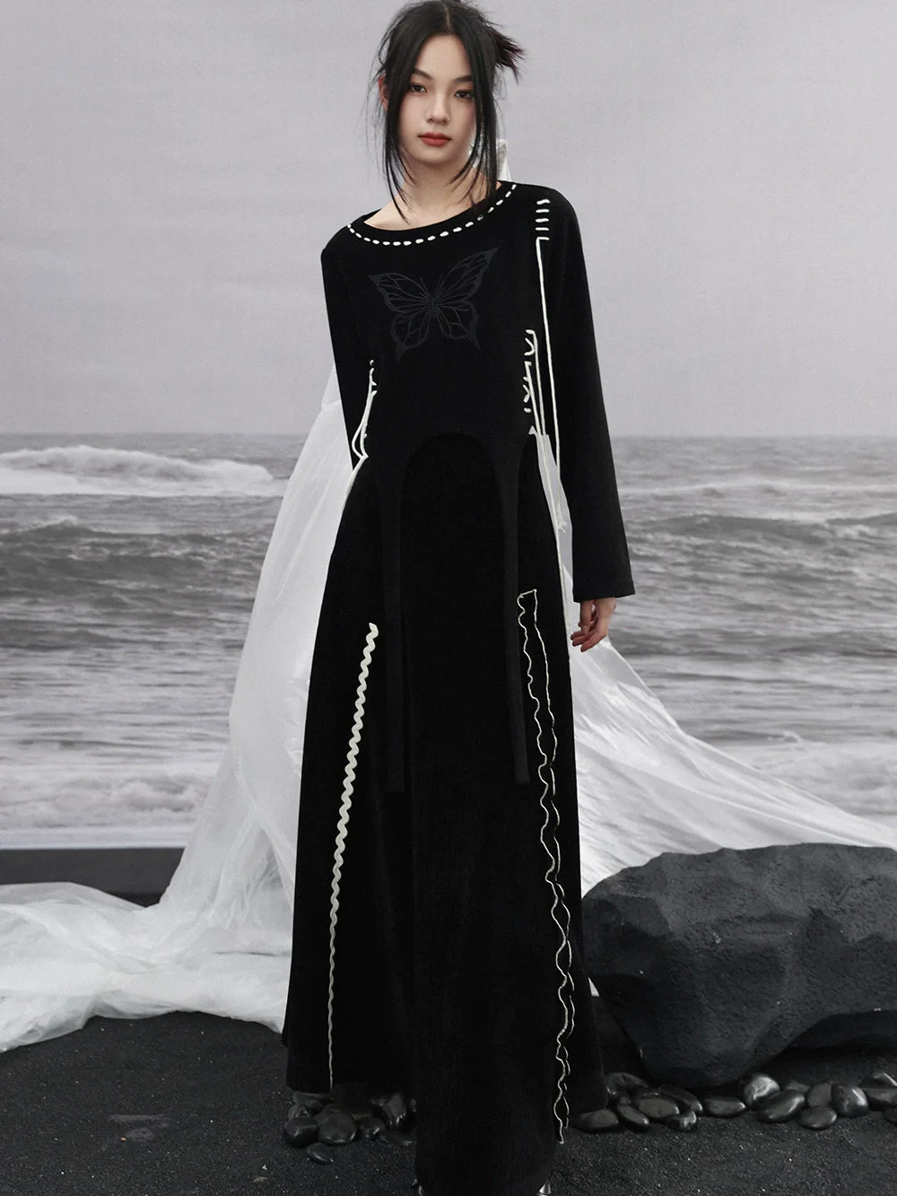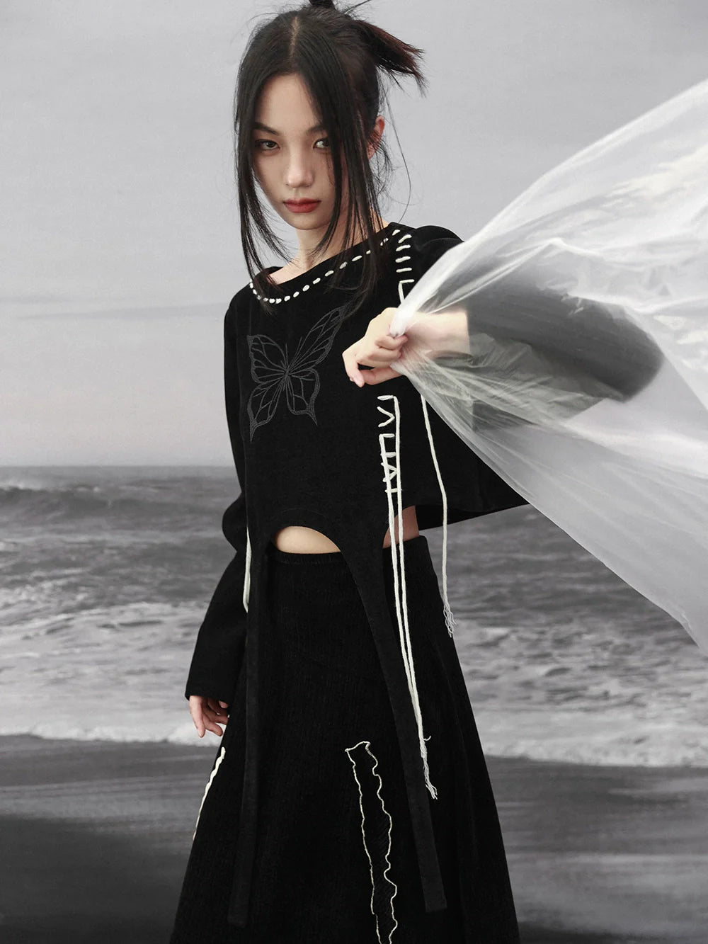 Dieses schwarze Sweatshirt von 可爱的 besticht durch ein kurzes Schmetterlingsdesign und stylische Riemchendetails. Halten Sie sich warm und sehen Sie in diesem einzigartigen und bequemen Oberteil mühelos bezaubernd aus.