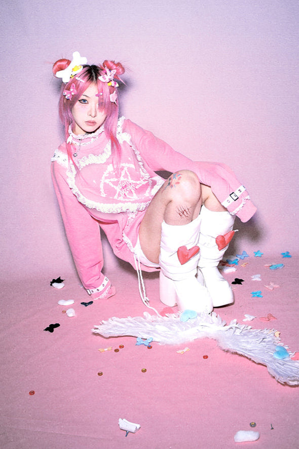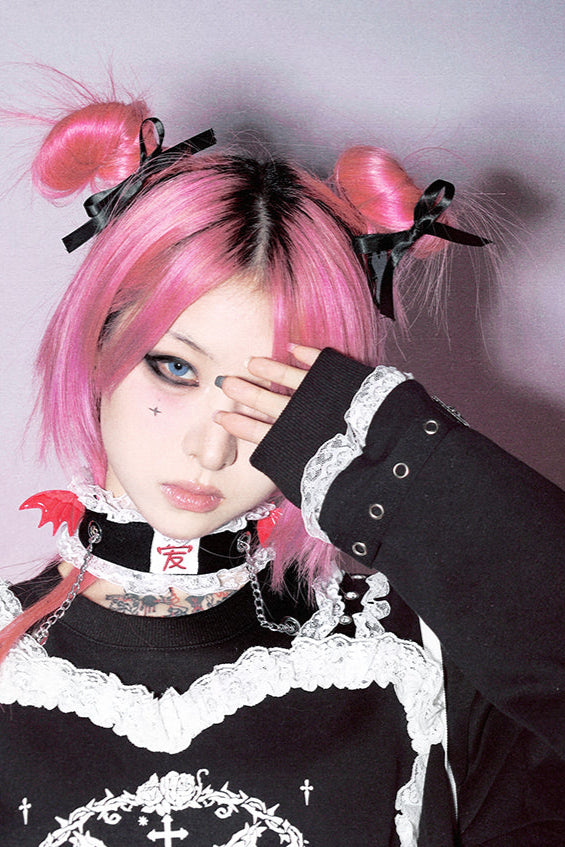 Rosa und weißes Old School Lolita Fashion Kleid Bowknot Detais Lolita JSK Set