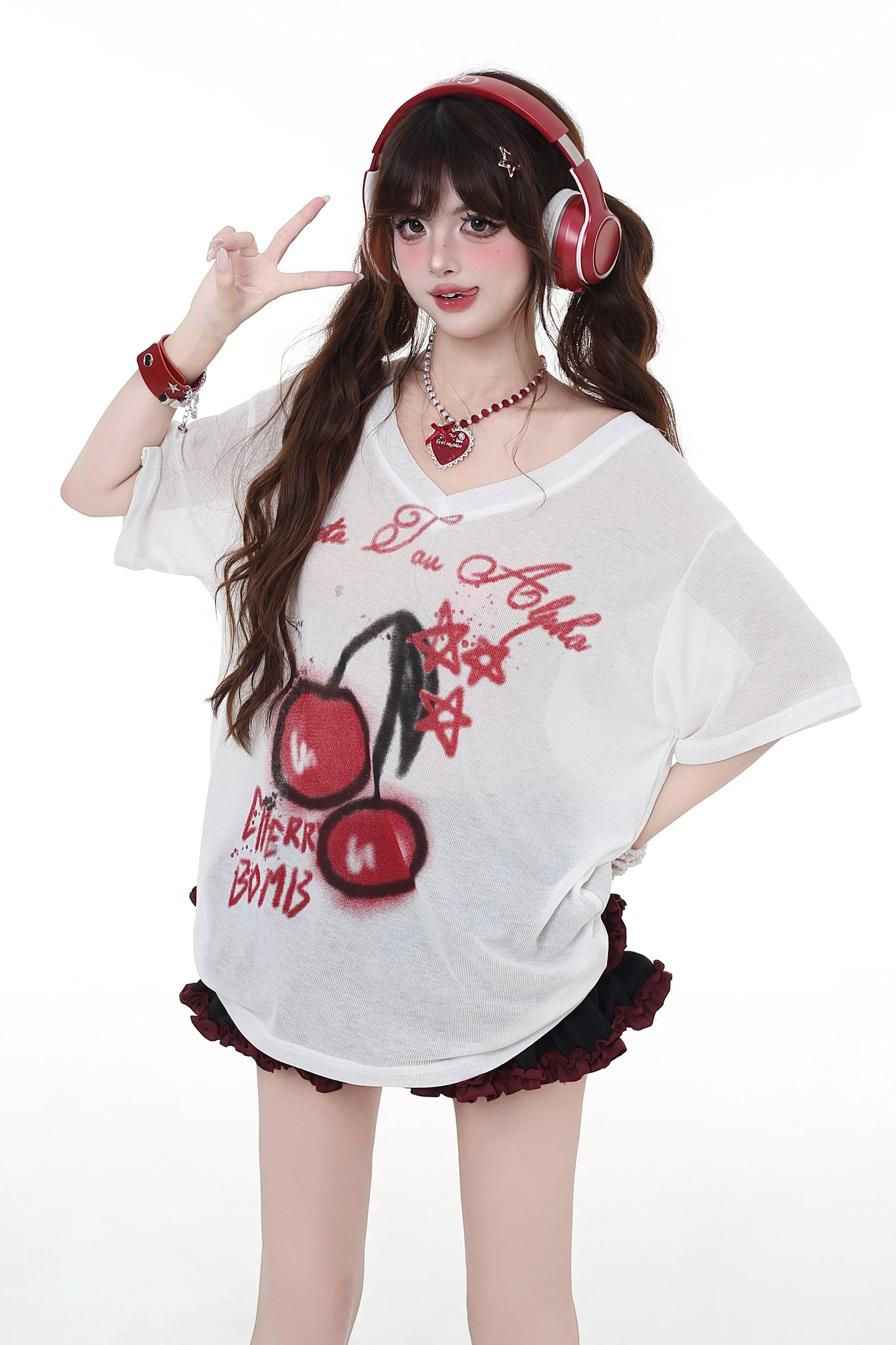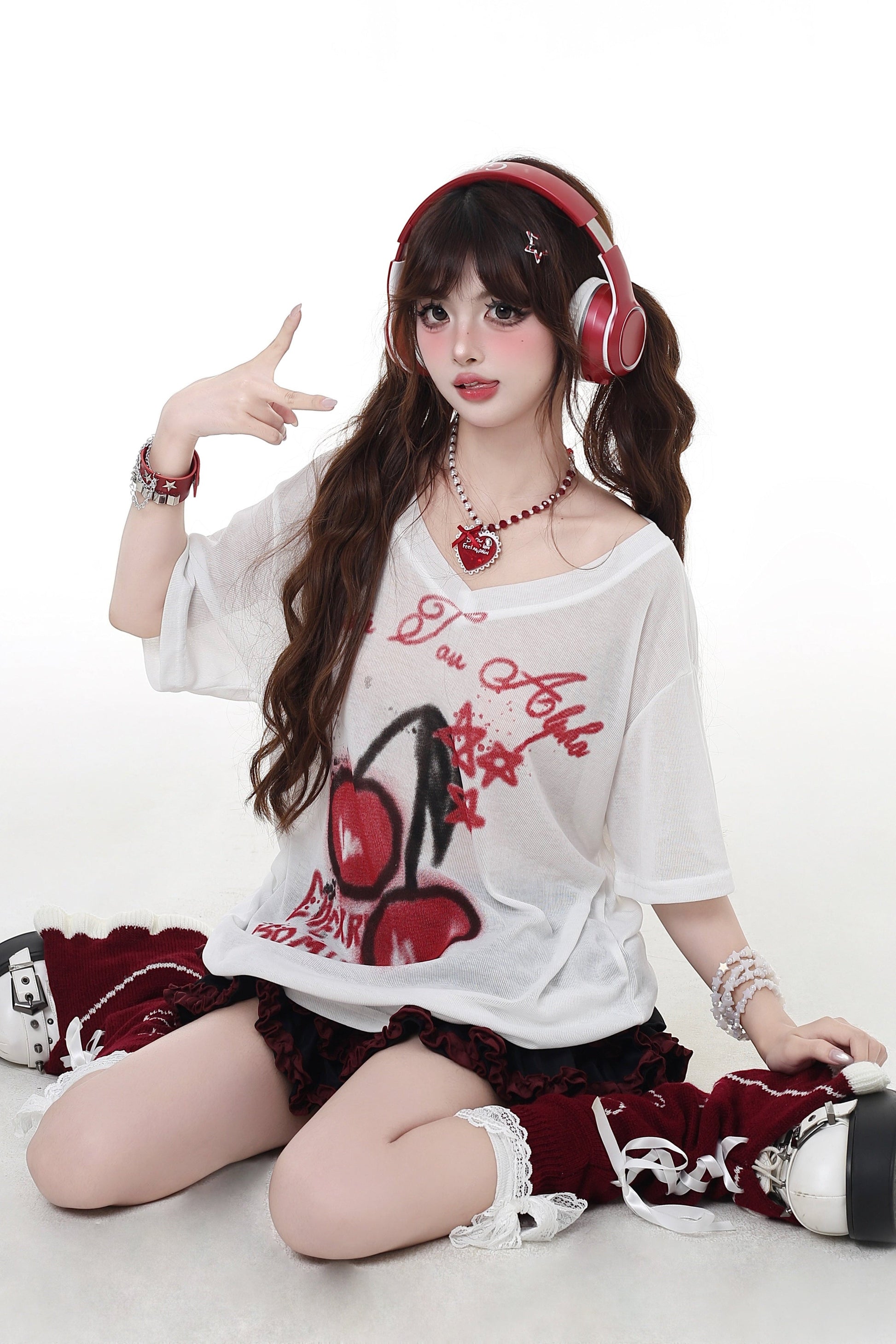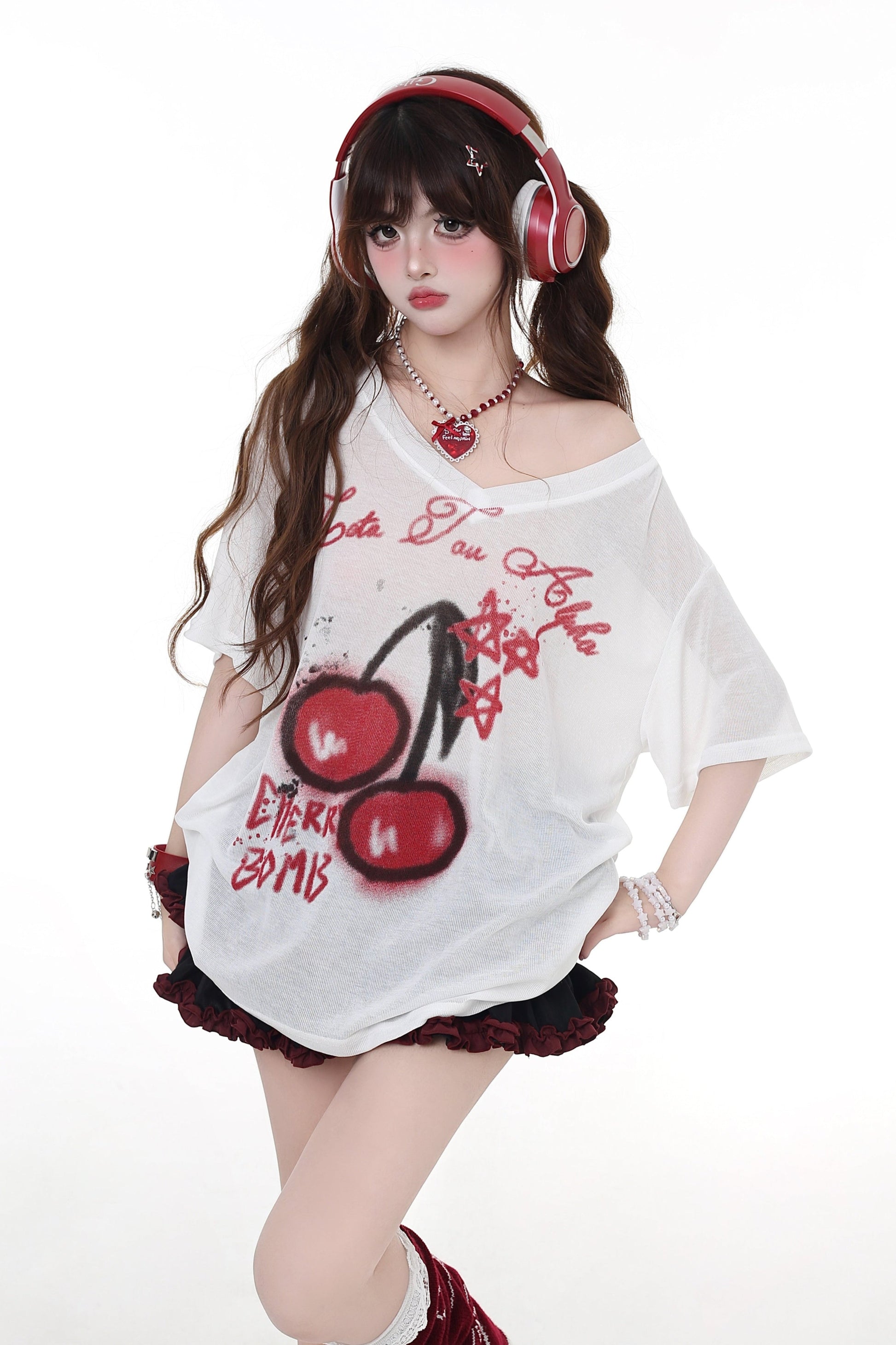 ❤Süßes cooles T-Shirt mit Kirschkragen❤