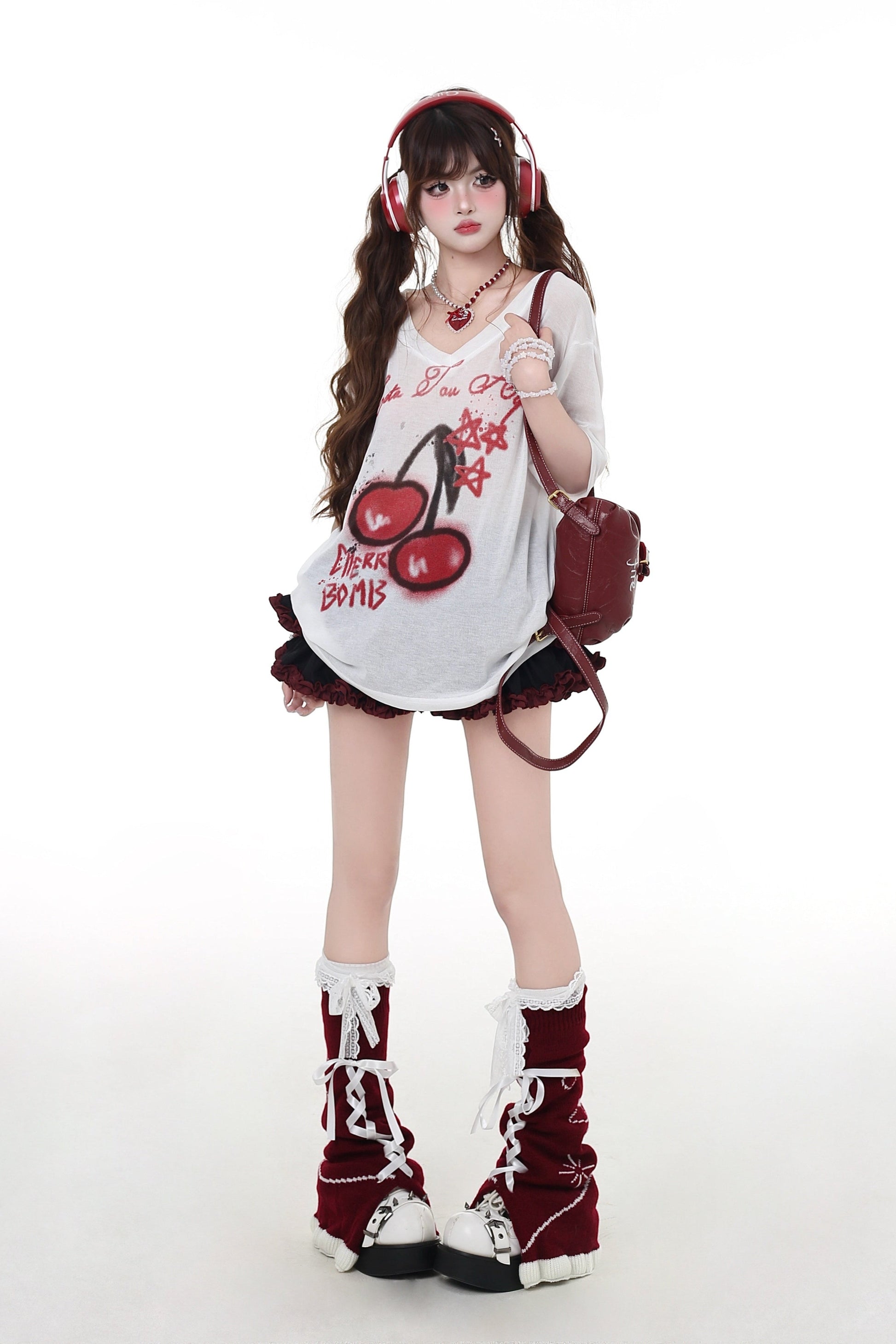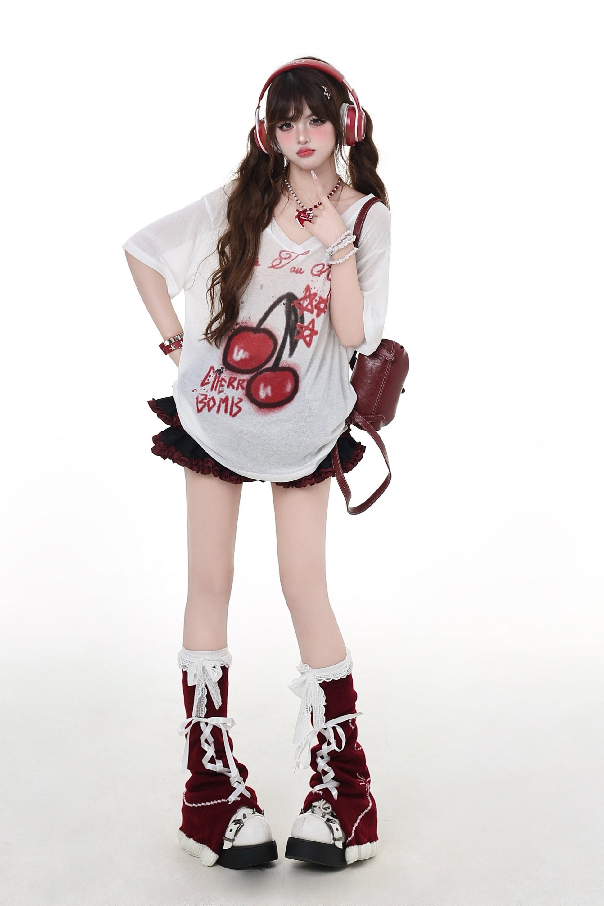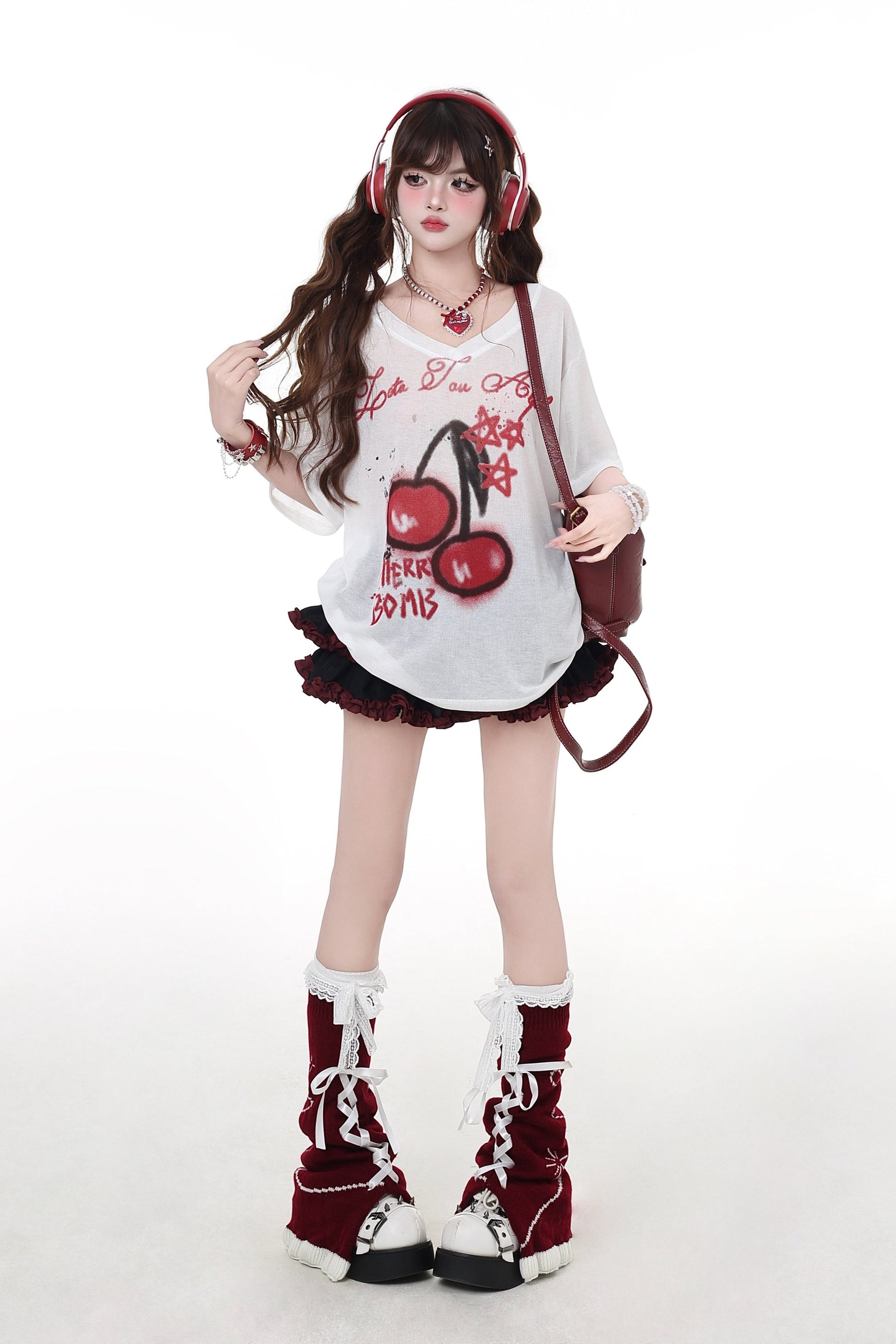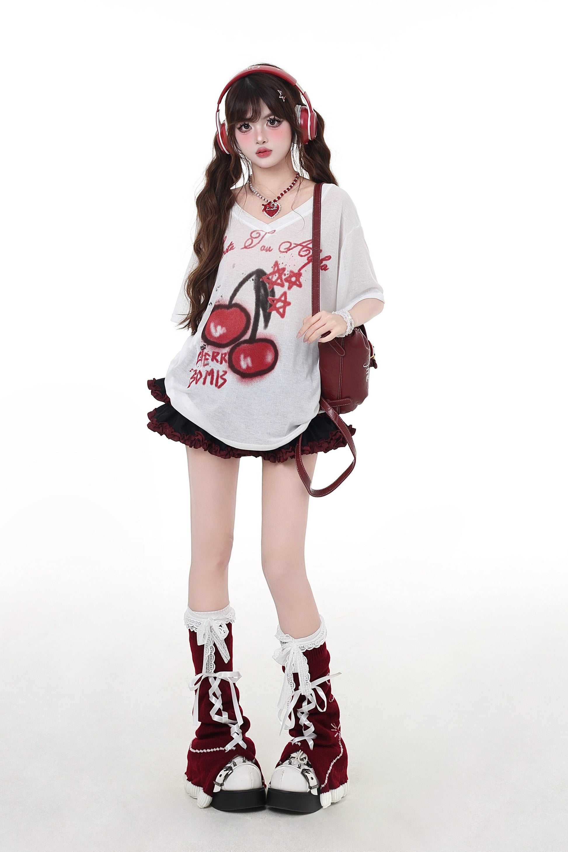 ❤Süßes cooles T-Shirt mit Kirschkragen❤