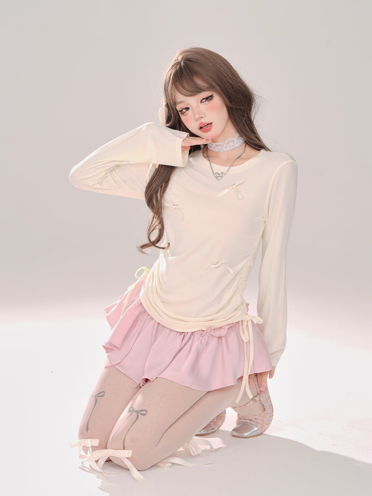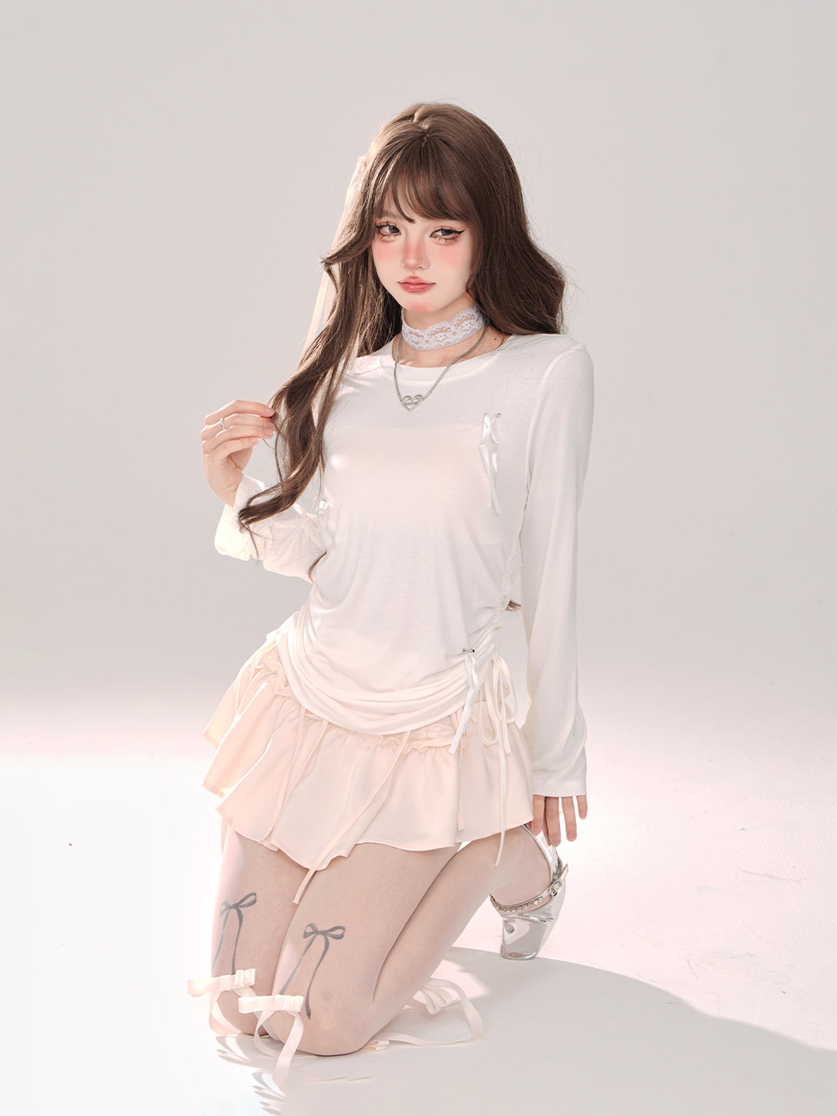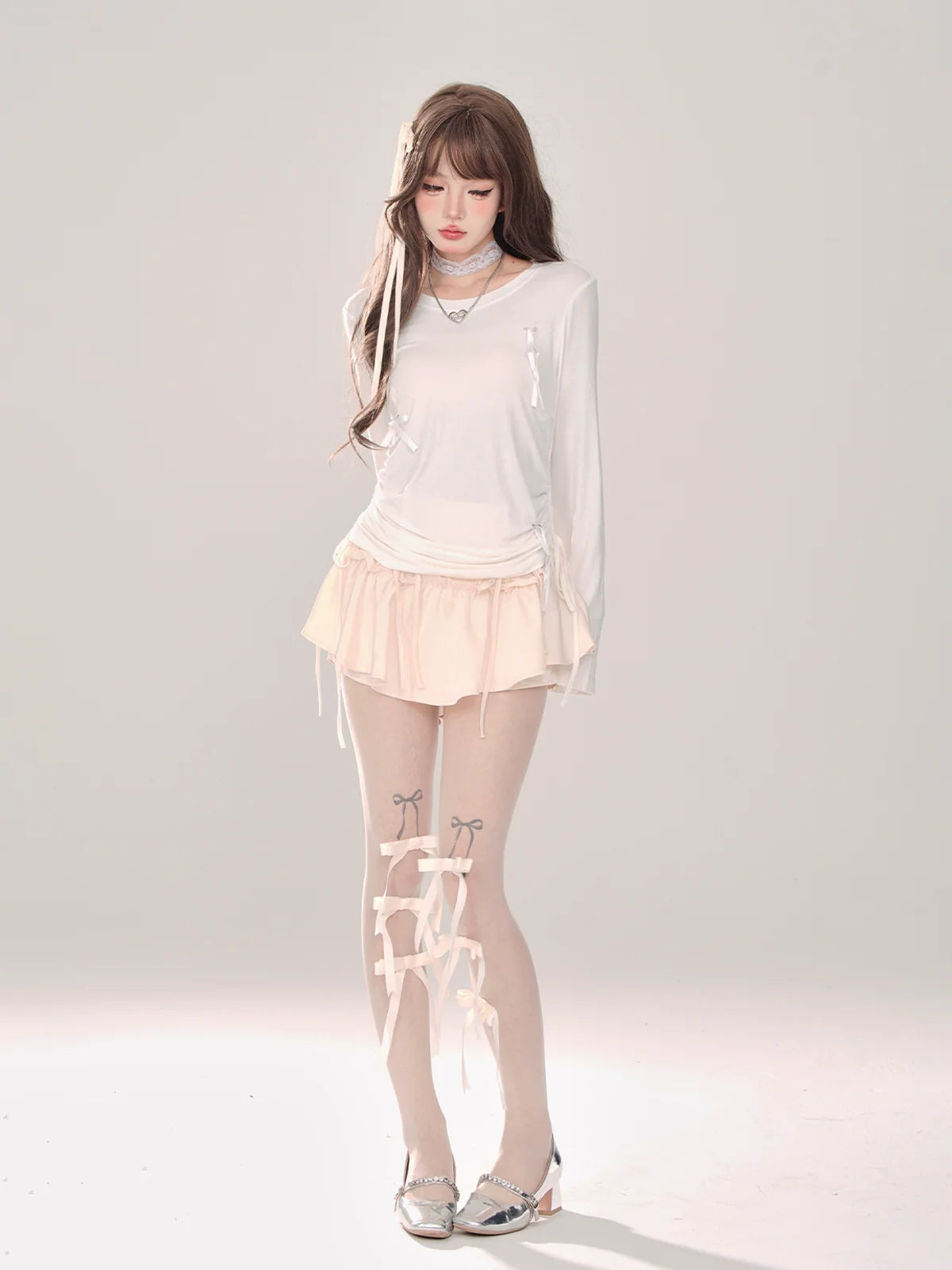 Verleihen Sie Ihrer Garderobe mit unserem Sweet Long Ribbon Drawstring T einen Hauch von Niedlichkeit. Mit seinem einzigartigen Kordelzug-Design ist dieses Shirt sowohl stylisch als auch praktisch. Bleiben Sie den ganzen Tag bequem und bezaubernd.