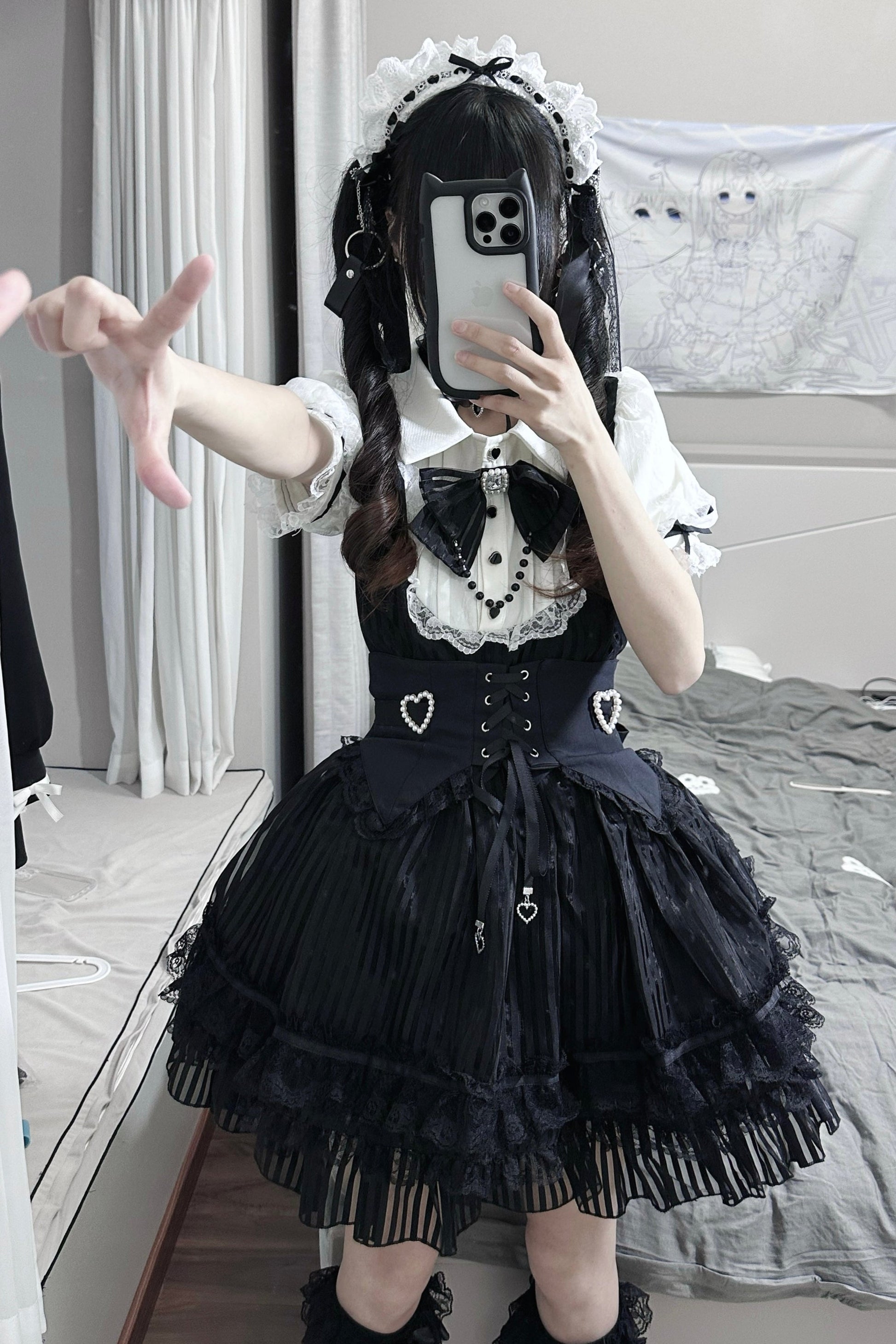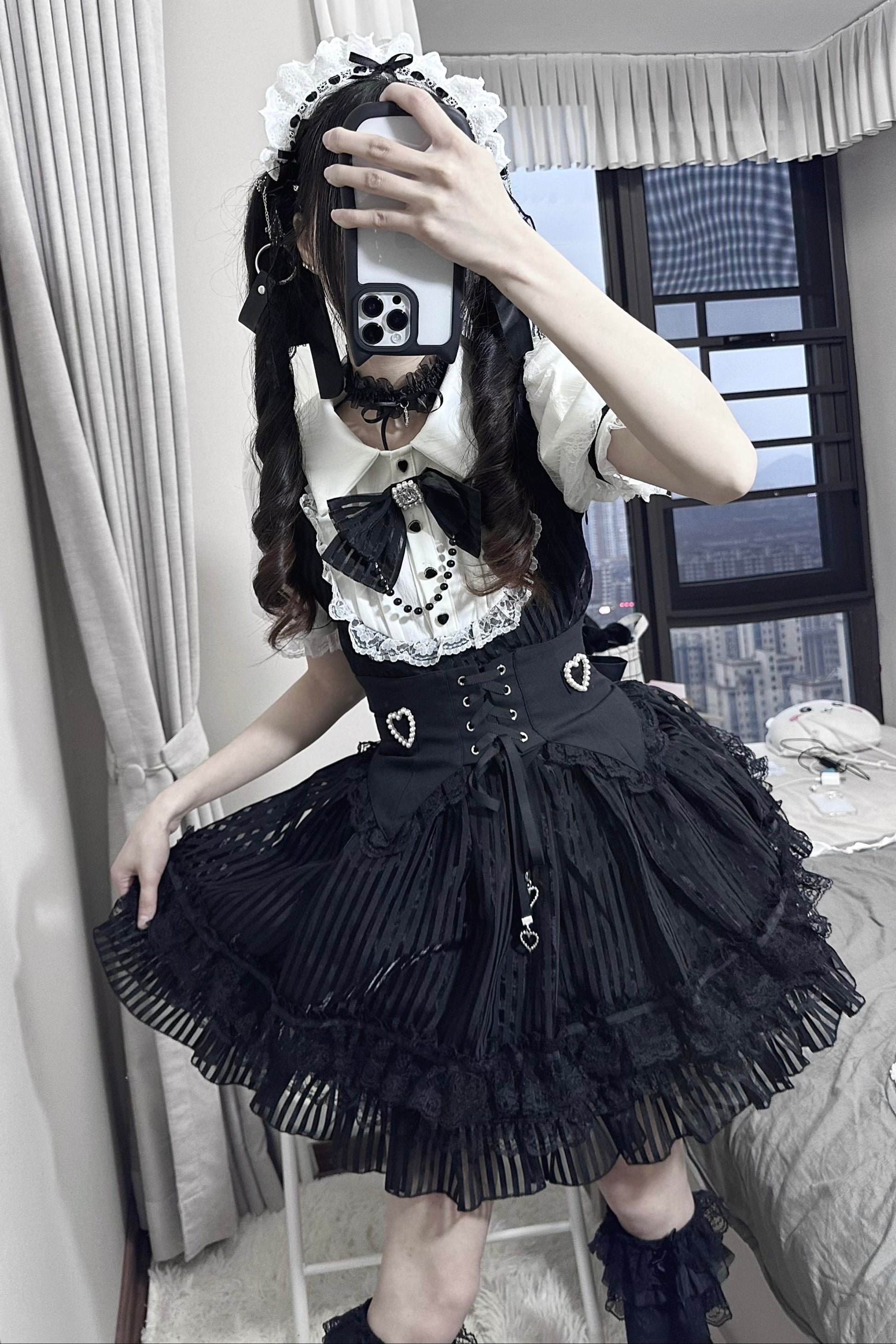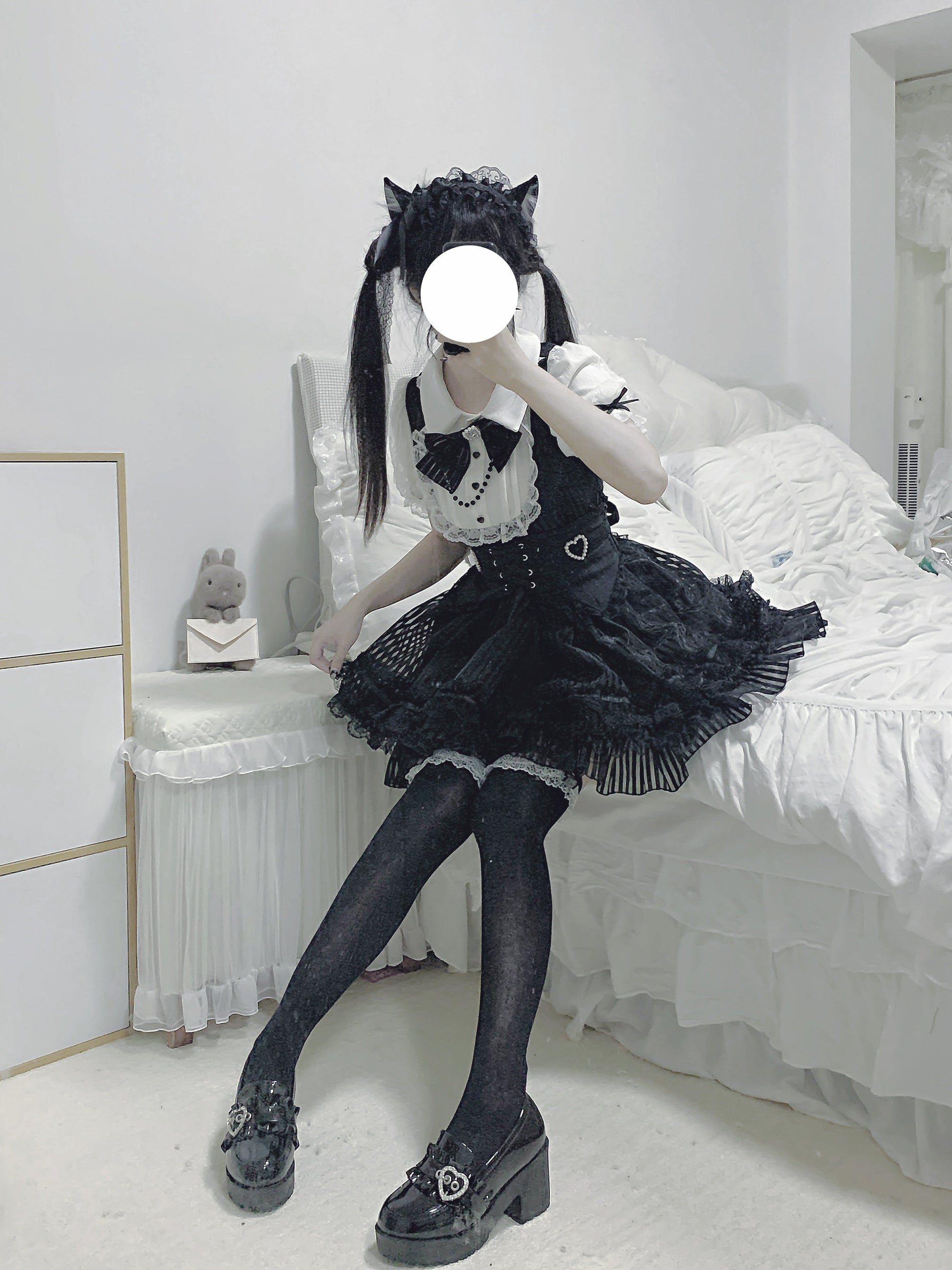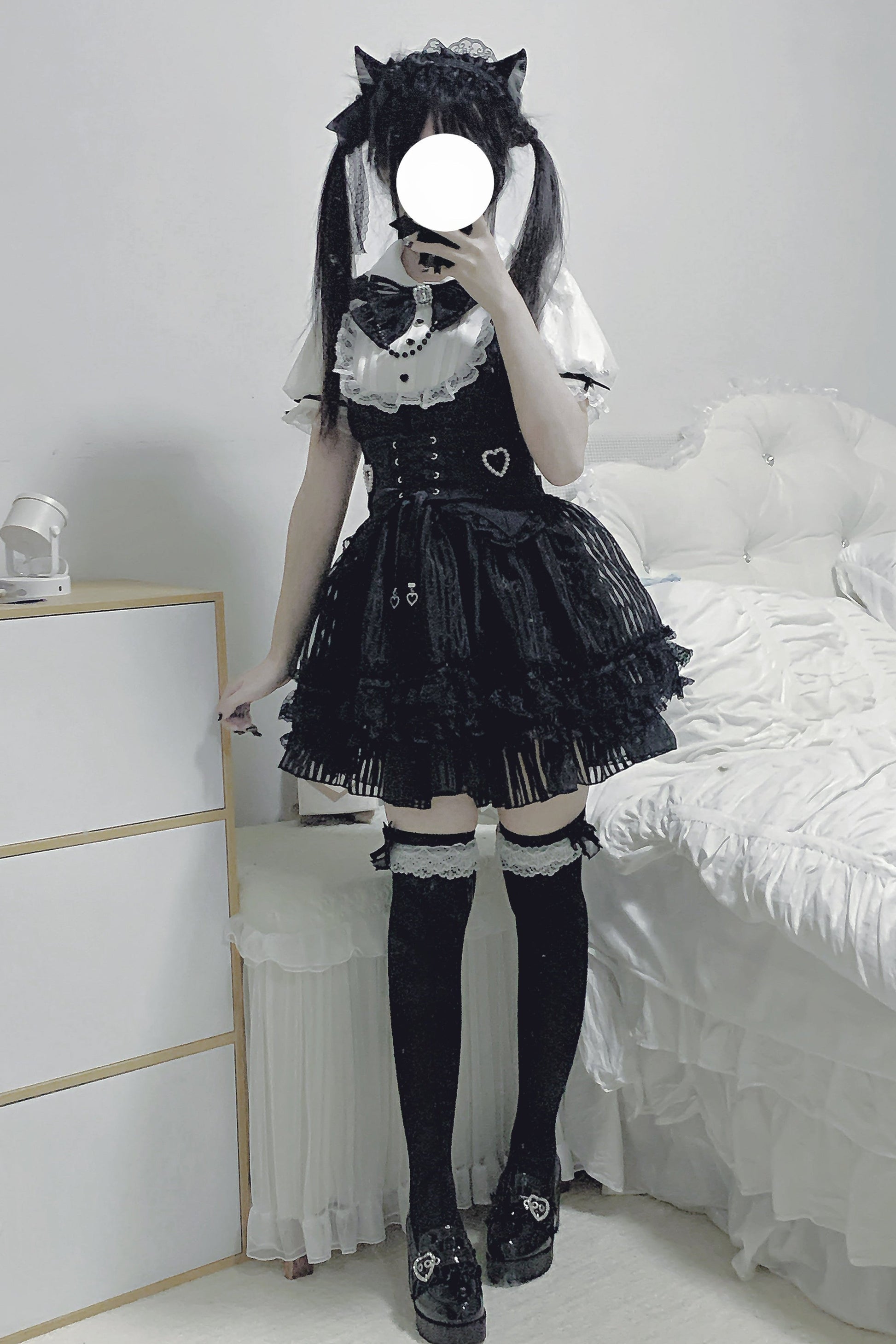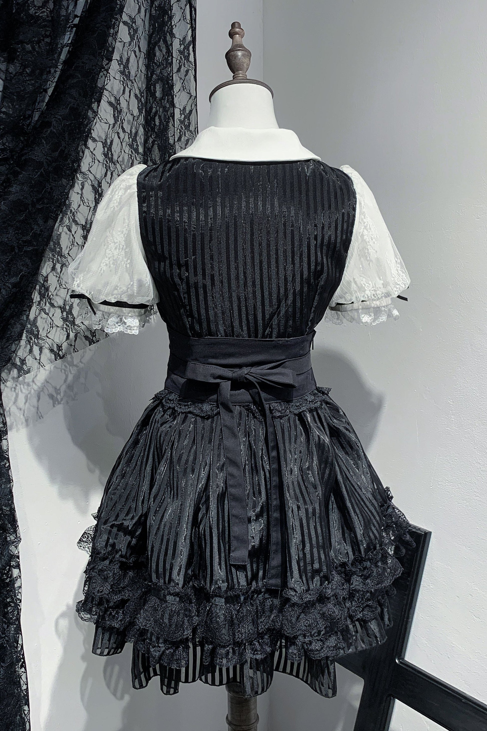 Schwarz-weißes Old School Lolita Fashion Kleid Bowknot Lolita JSK Set