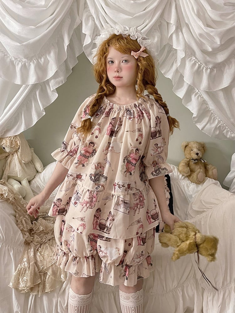 Dieses süße Pyjama-Set besteht aus einem bezaubernden Oberteil mit Puffärmeln und bequemen Bloomer-Shorts, perfekt für eine gemütliche Nachtruhe oder einen entspannten Tag zu Hause. Das süße Design und die weichen Stoffe verleihen Ihrer Garderobe einen Hauch von Niedlichkeit.