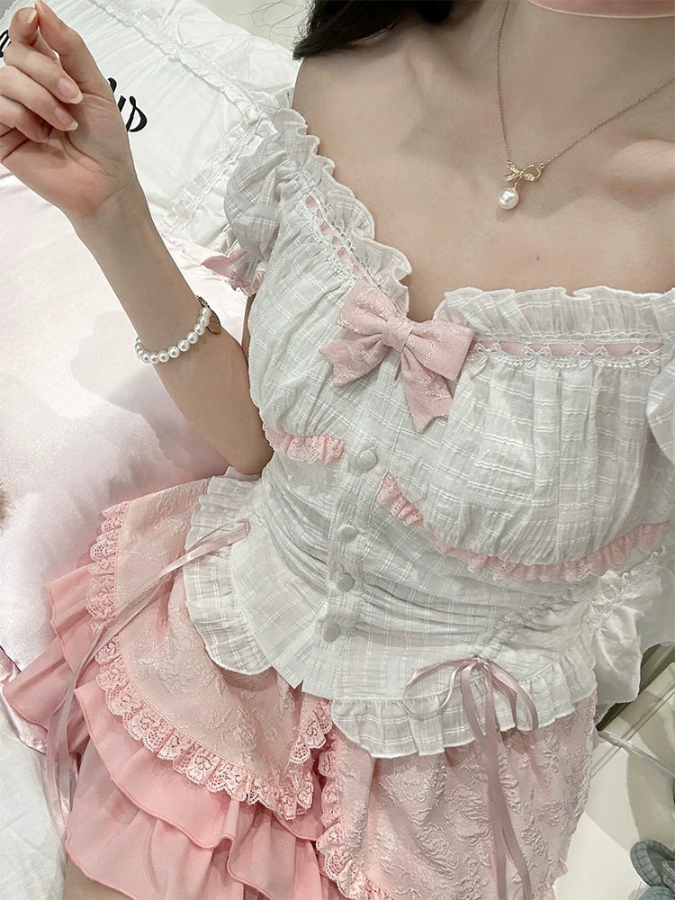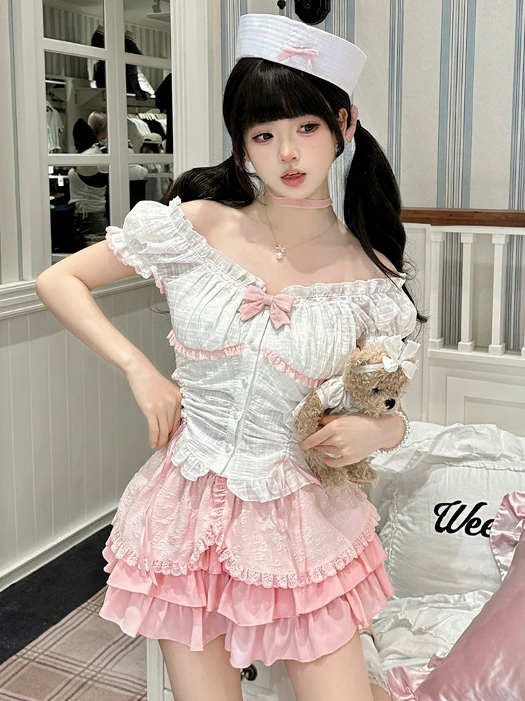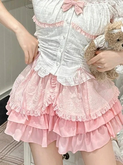 Süßes Rock-Kuchen-kleines schulterfreies Top + Schleife