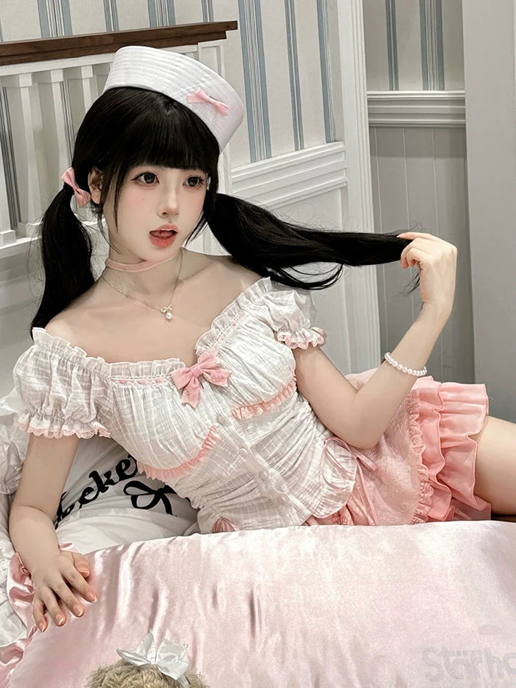 Rosa und weißes Old School Lolita Fashion Kleid Bowknot Detais Lolita JSK Set