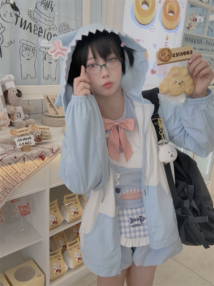 Blau-weißes Old School Lolita Fashion Kleid mit Schleife und Details, JSK-Set