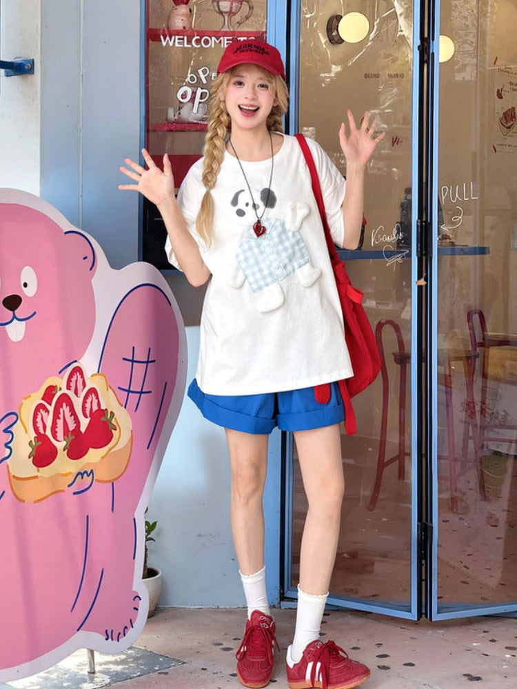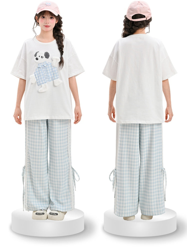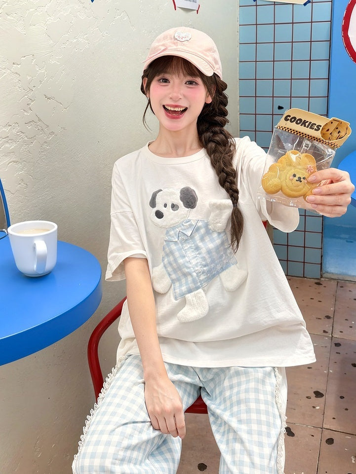 Weißes, lockeres Baumwoll-T-Shirt mit entzückender Welpen-Applikation