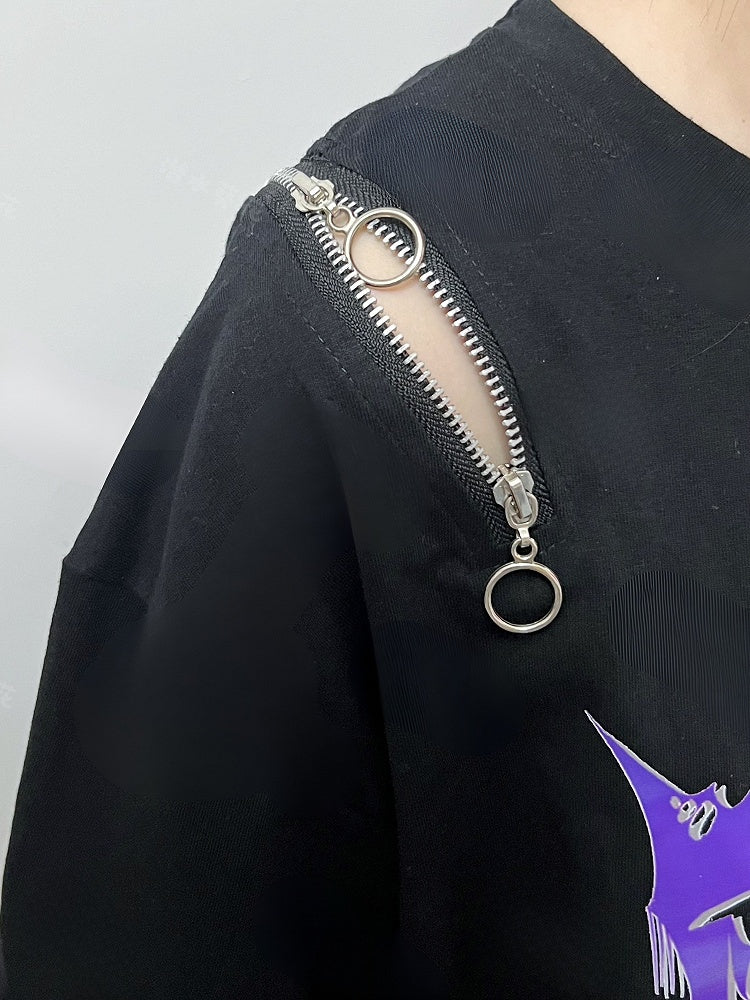 T-Shirt Kei Schwarzer Hals Runder Cartoon Mädchendruck Jirai