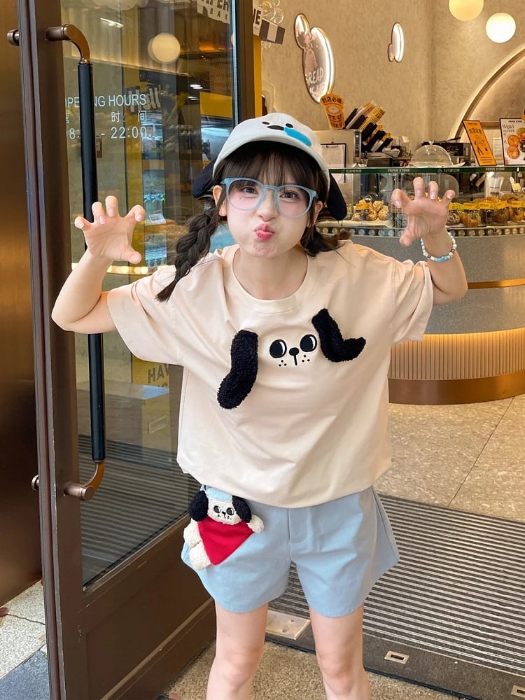 Beiges, lockeres T-Shirt mit Rundhalsausschnitt und Welpenohren
