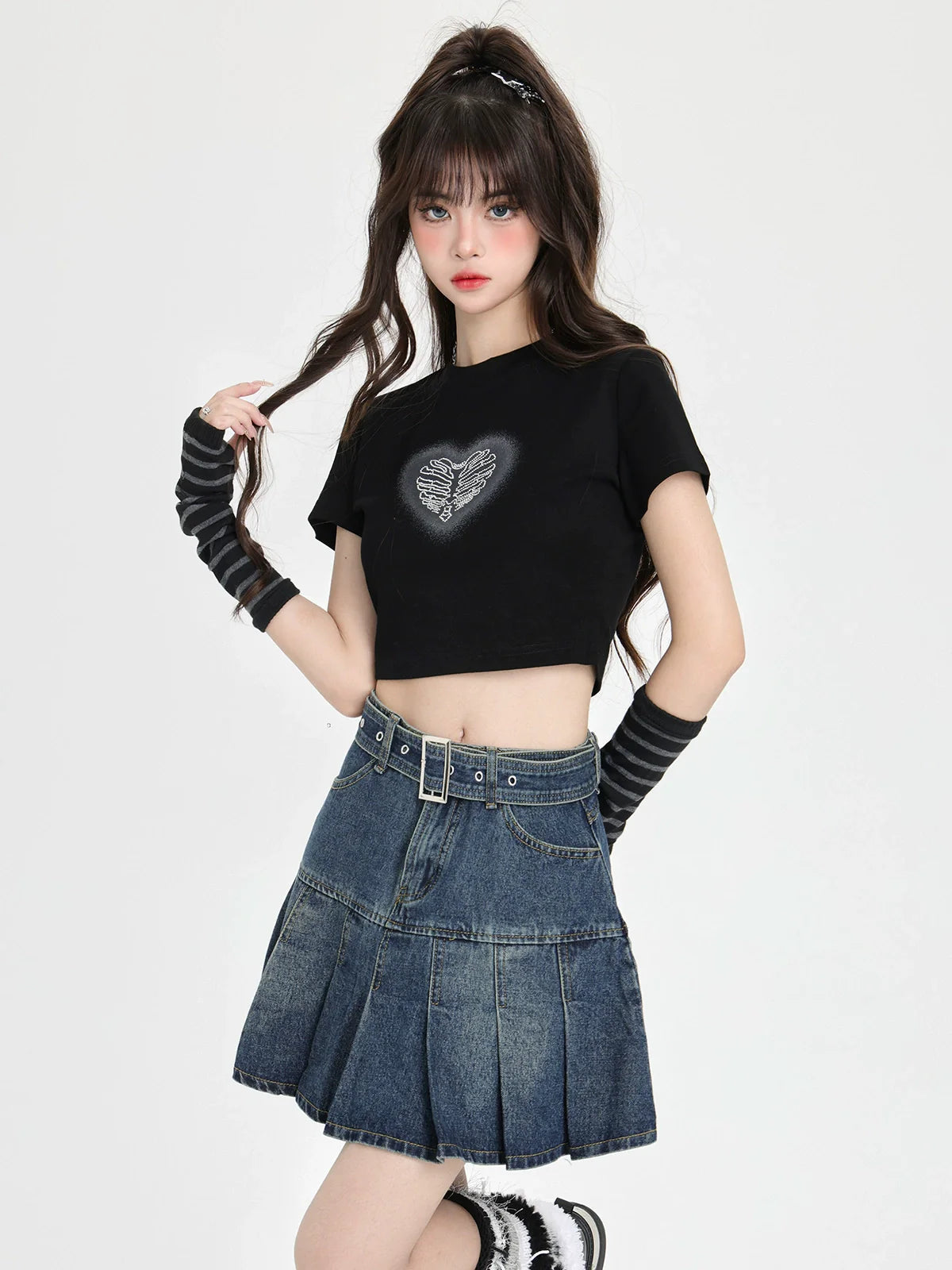 Dieses süße T-Shirt mit amerikanischem Ärmel und kurzem Print „Love“ verleiht Ihrer Garderobe einen Hauch von Charme. Mit seinem einzigartigen Design und der bequemen Passform ist es perfekt für jeden lässigen Anlass. Zeigen Sie Ihre Liebe zu Amerika mit diesem einzigartigen Shirt.