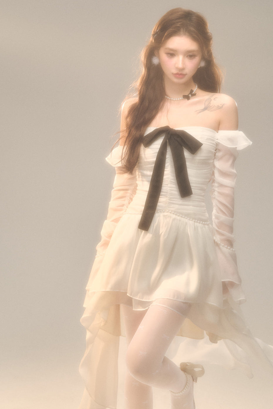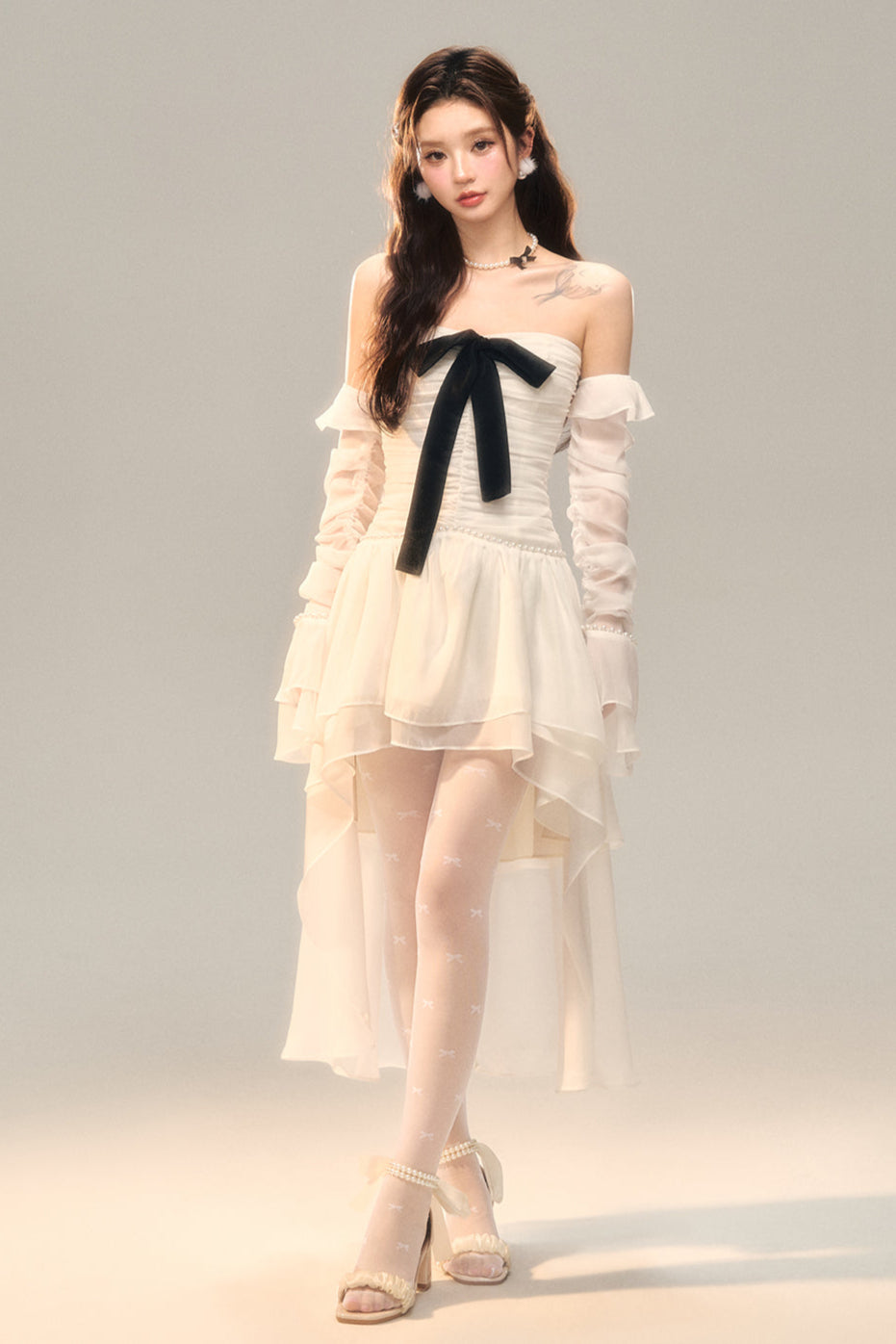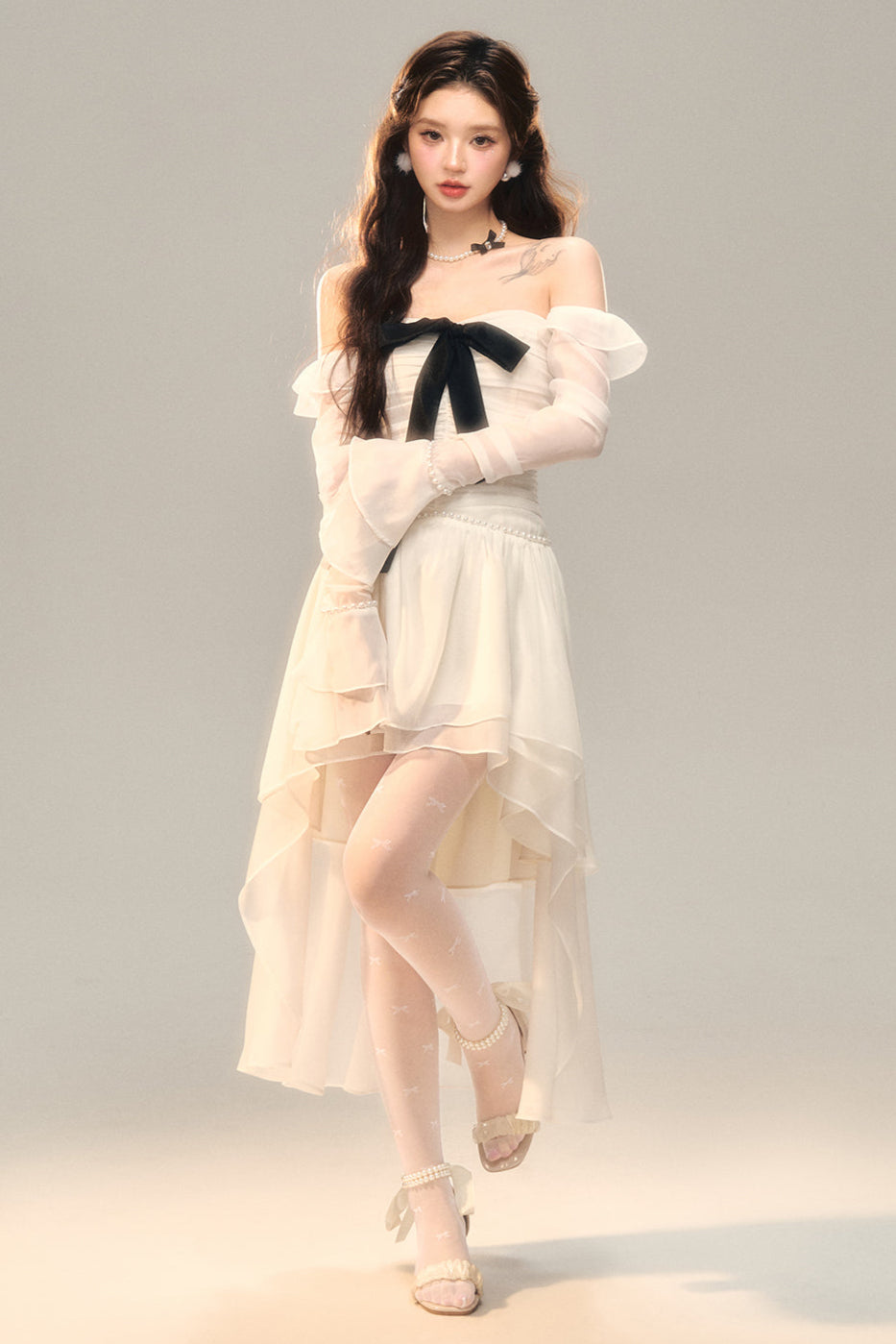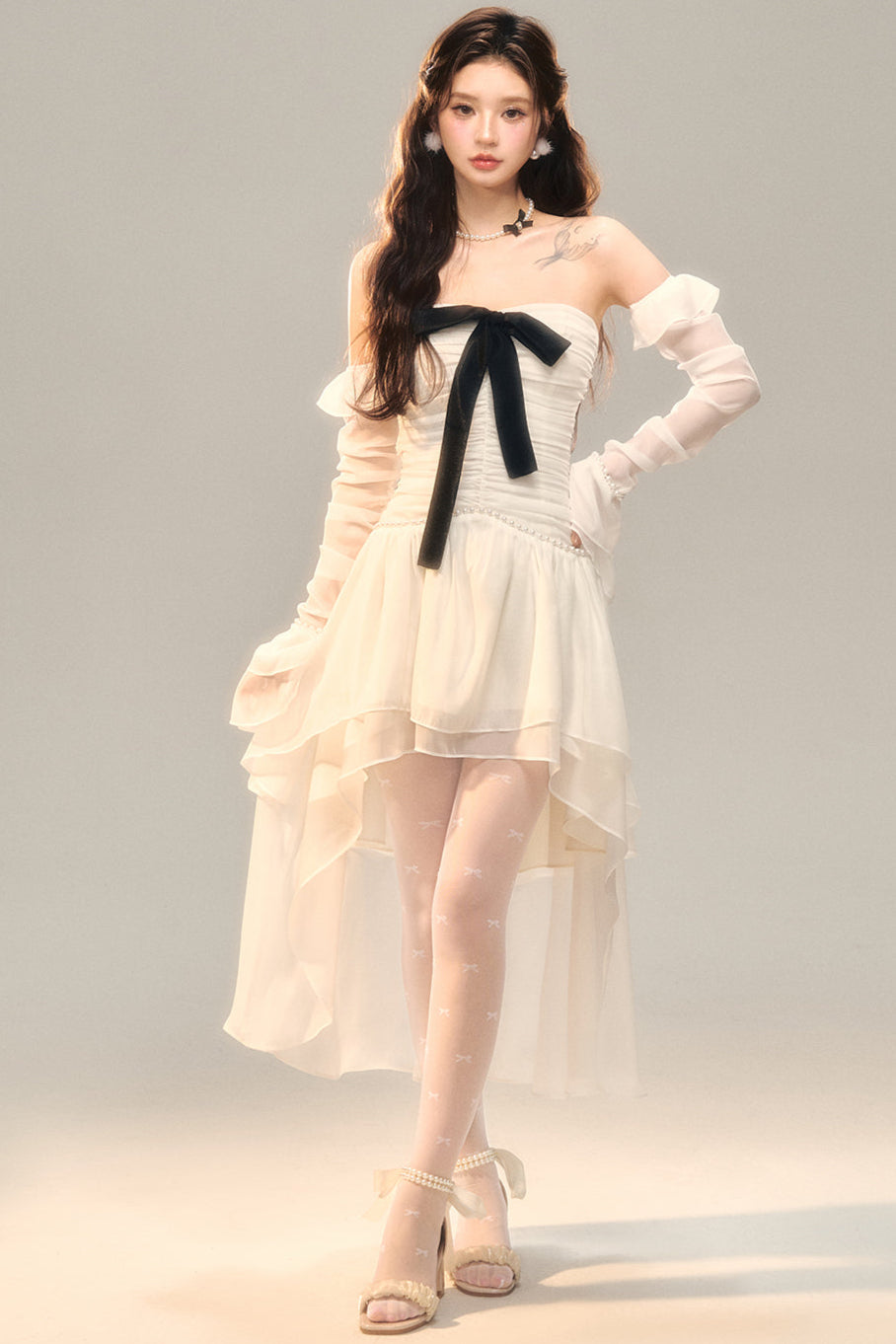 Schwarz-weißes Old School Lolita Fashion Kleid Bowknot Lolita JSK Set