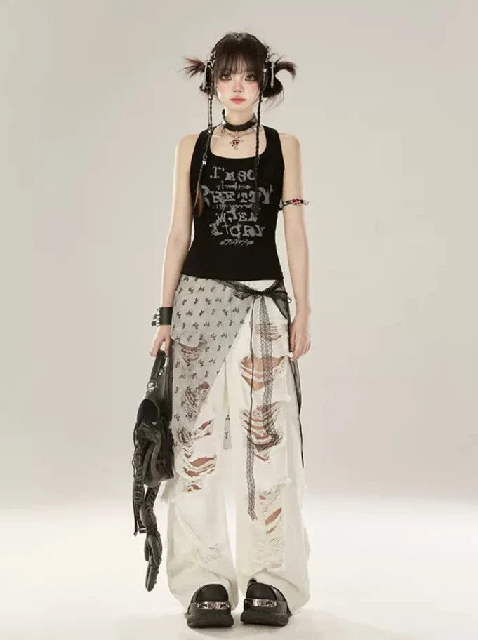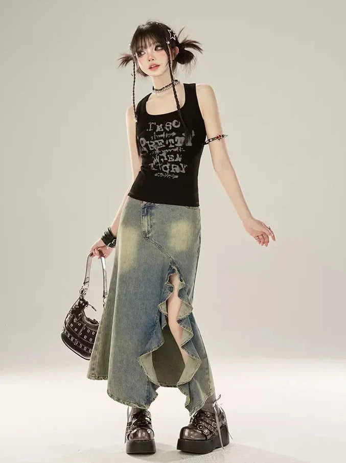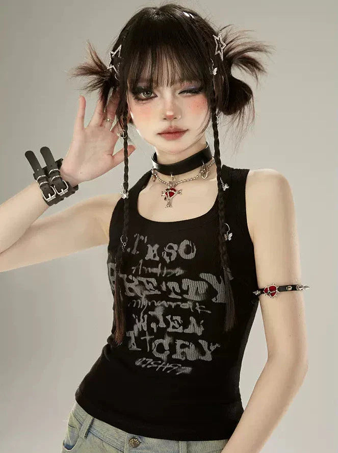 Tank Letter Schwarzes Top Amerikanischer Designdruck