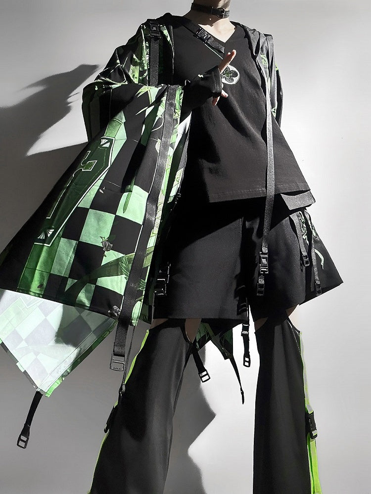 Techwear Strap Schwarzes T-Shirt Ouji Fashion Buckle V-Ausschnitt