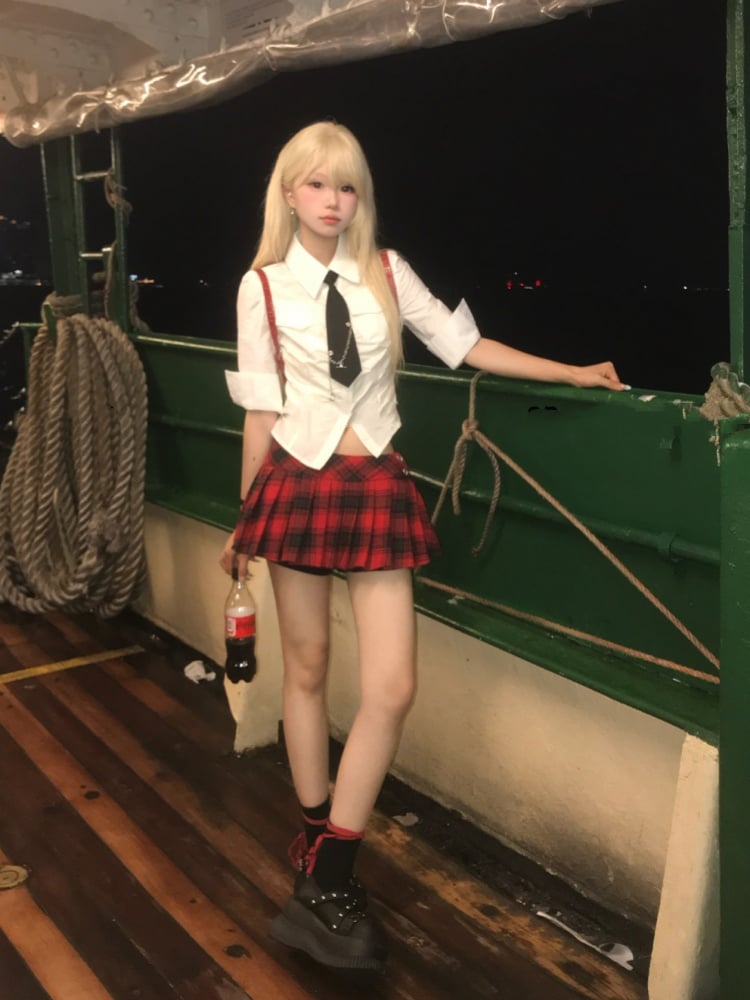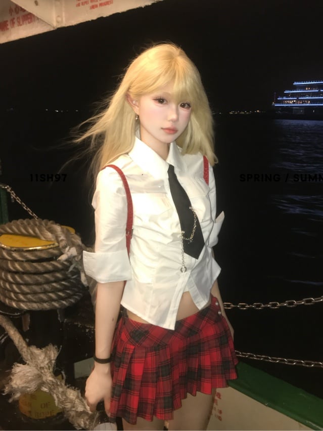 Blau-weißes Old School Lolita Fashion Kleid mit Schleife und Details, JSK-Set