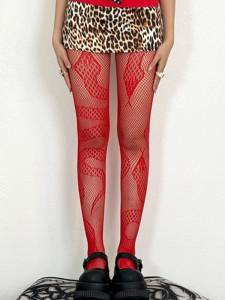Strumpfhose Schwarz/Rot/Weiß Schlangenmuster Y2K