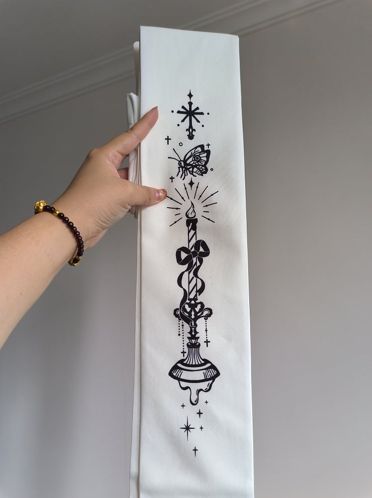 Weiße Gothic-Lolita-Strumpfhose mit Schmetterlings- und Kandelaber-Print