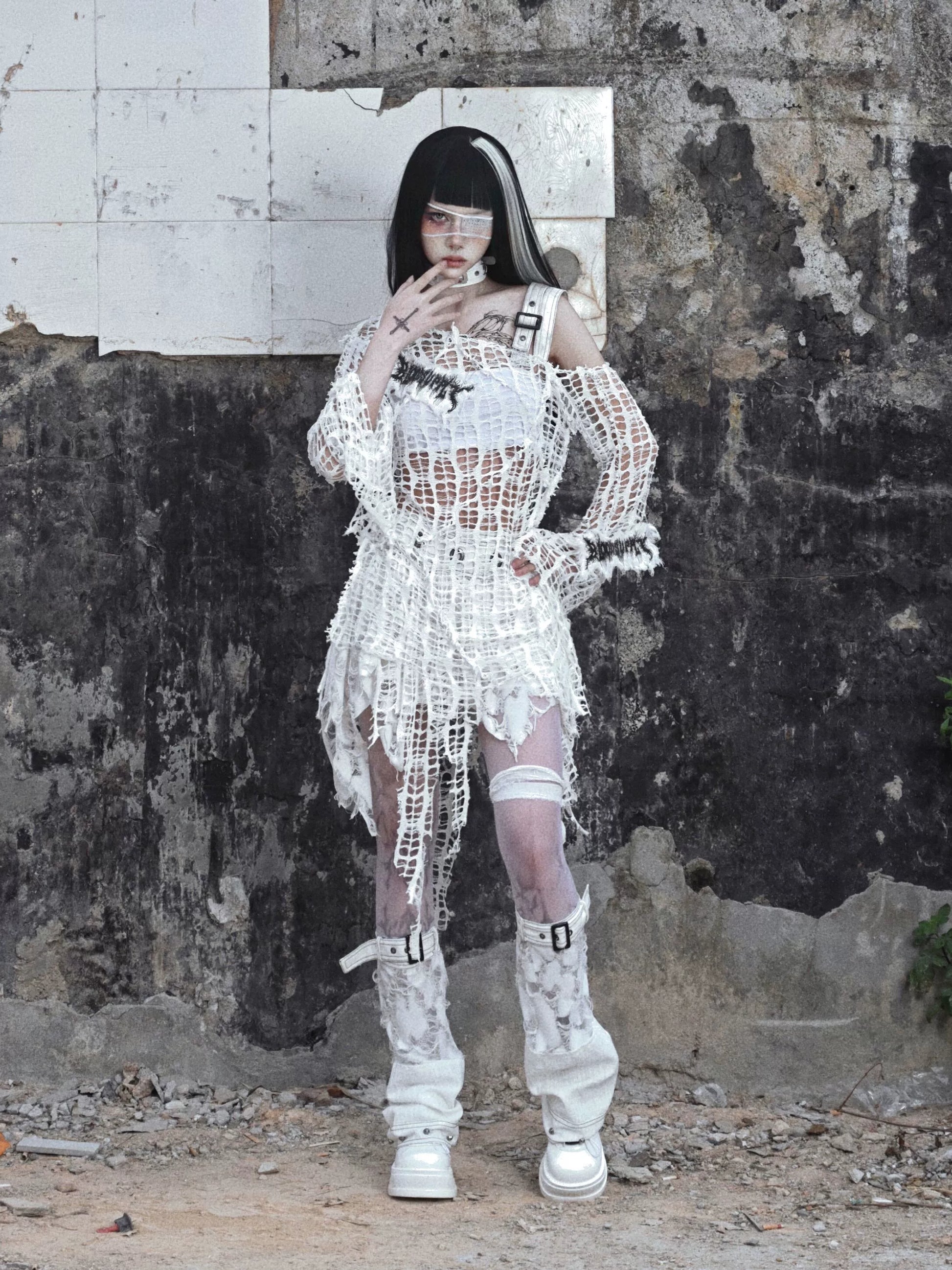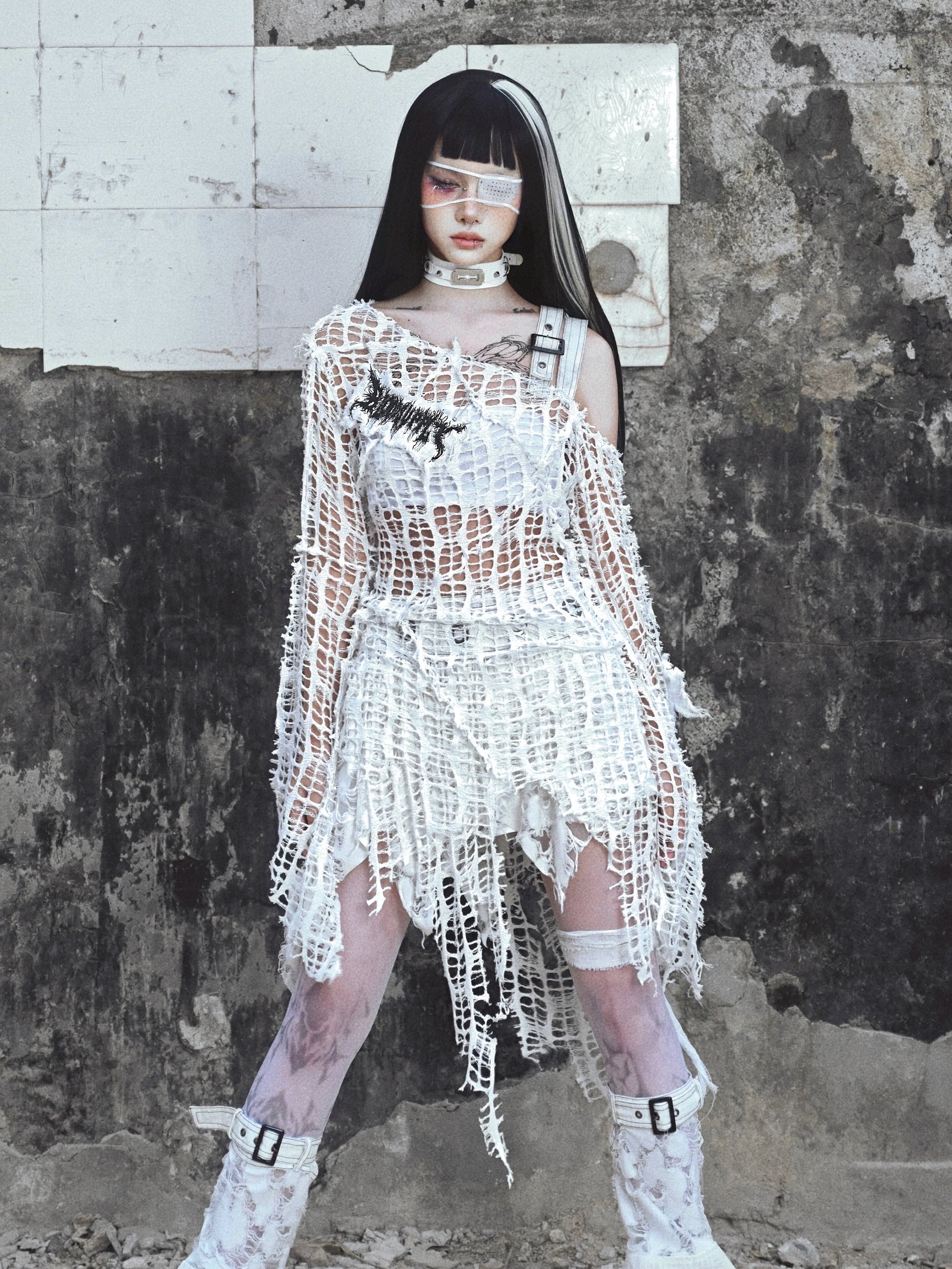 Top Gothic Weiß Beschädigt