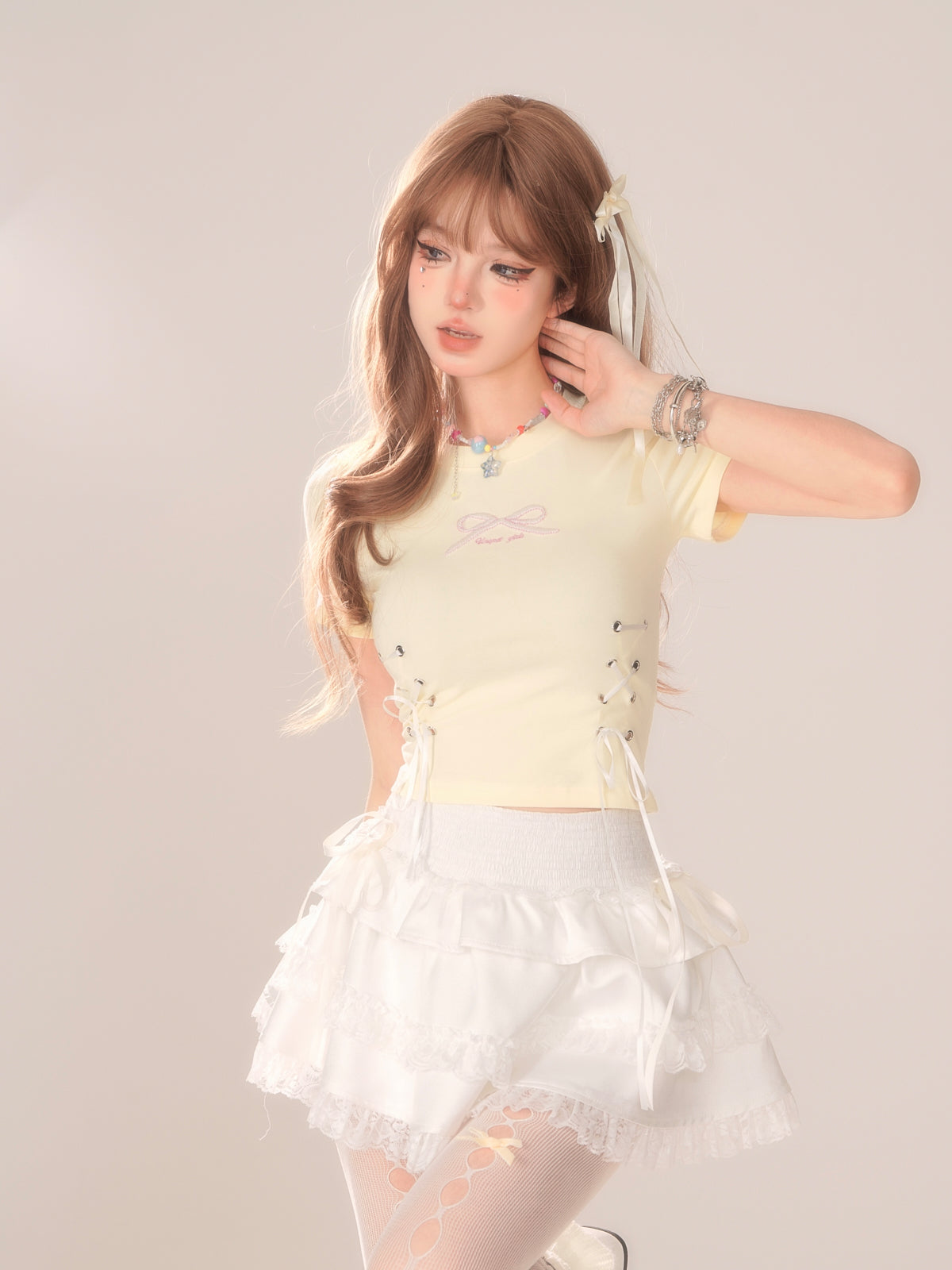 Dieses bezaubernde Top Ribbon Summer Slim Short Lace-up besticht durch sein zartes Schnürdesign und bringt Ihre schlanke Figur perfekt zur Geltung. Dank des leichten und atmungsaktiven Materials ist es ein Must-have für heiße Sommertage. Bleiben Sie den ganzen Sommer lang süß und bequem!