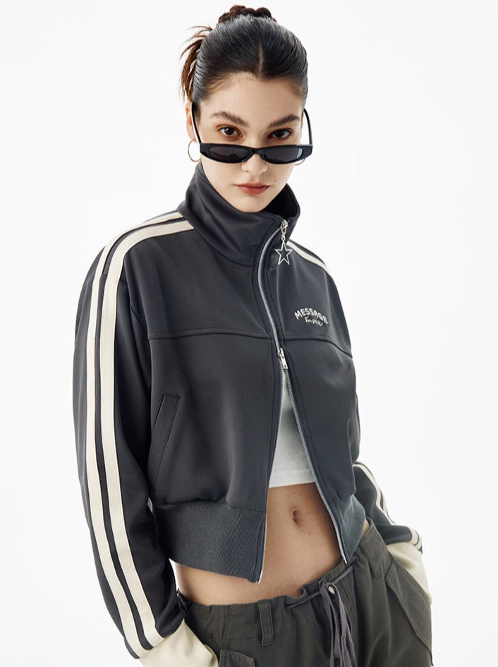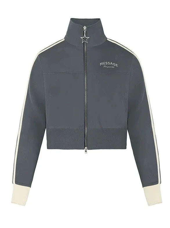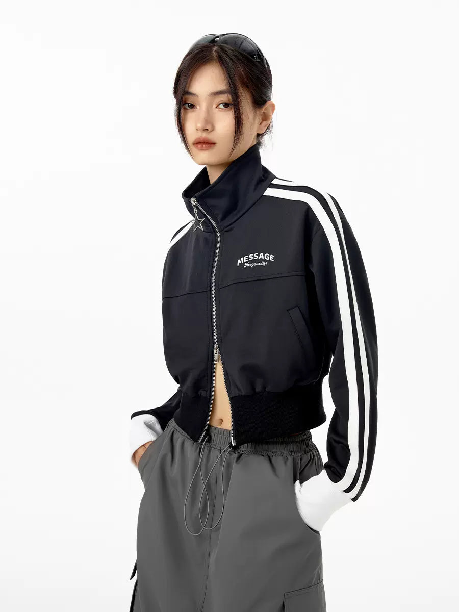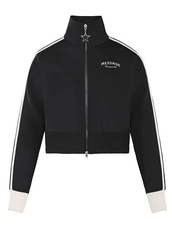 Dieses süße Top mit hohem Kragen verfügt über einen Reißverschluss für zusätzlichen Stil und Komfort. Das kurze Logo-Design verleiht Ihrem Outfit eine modische Note. Bleiben Sie mit diesem vielseitigen Stück trendy und schick.