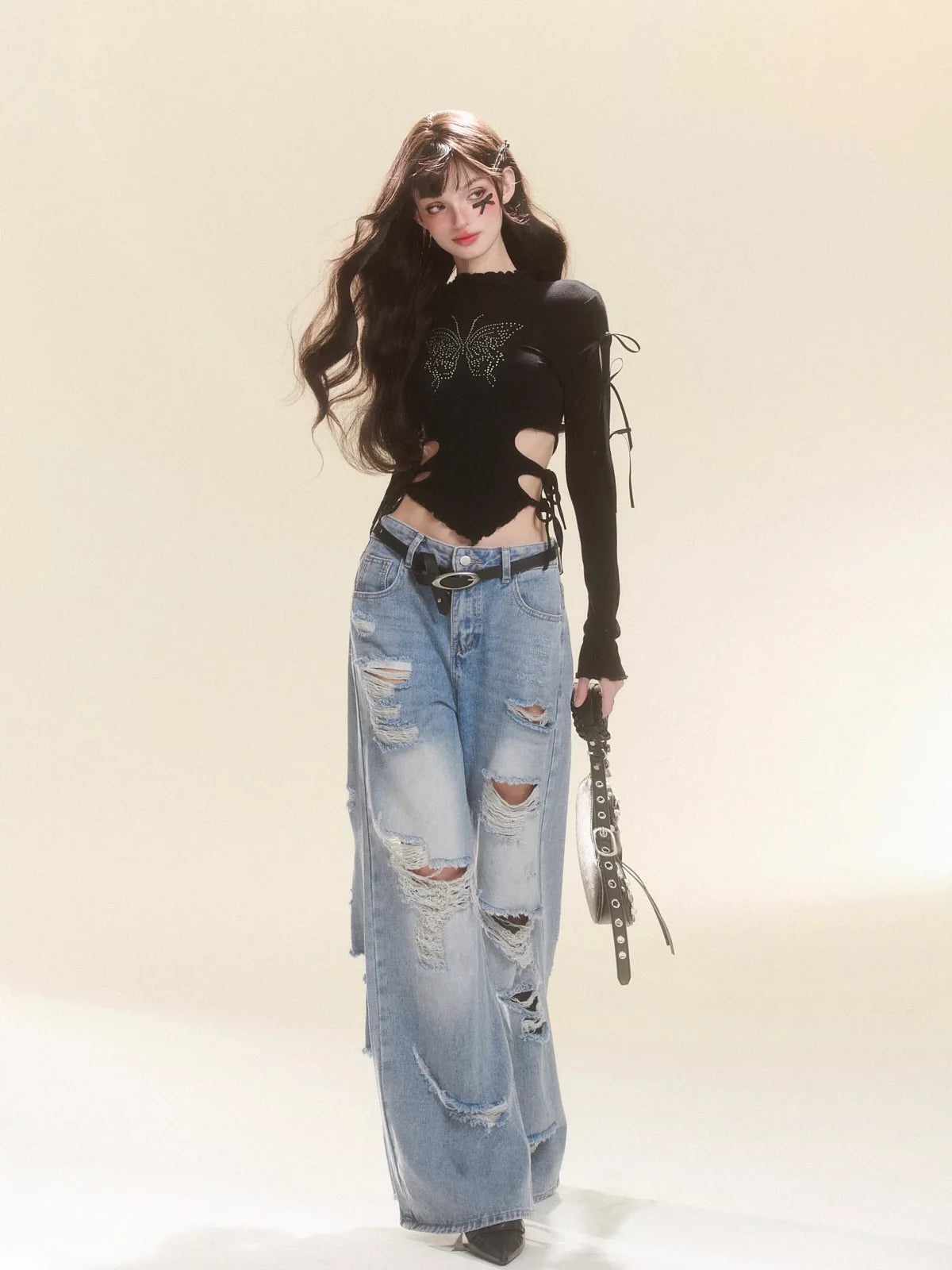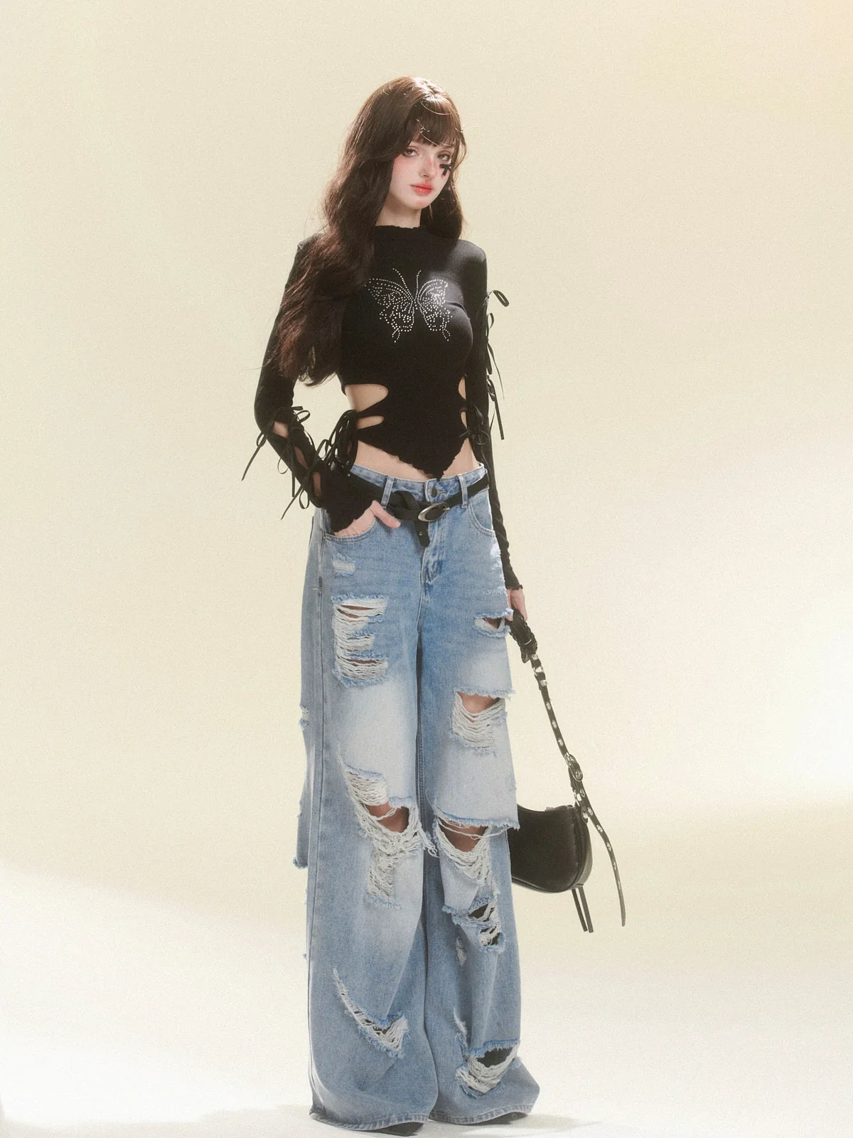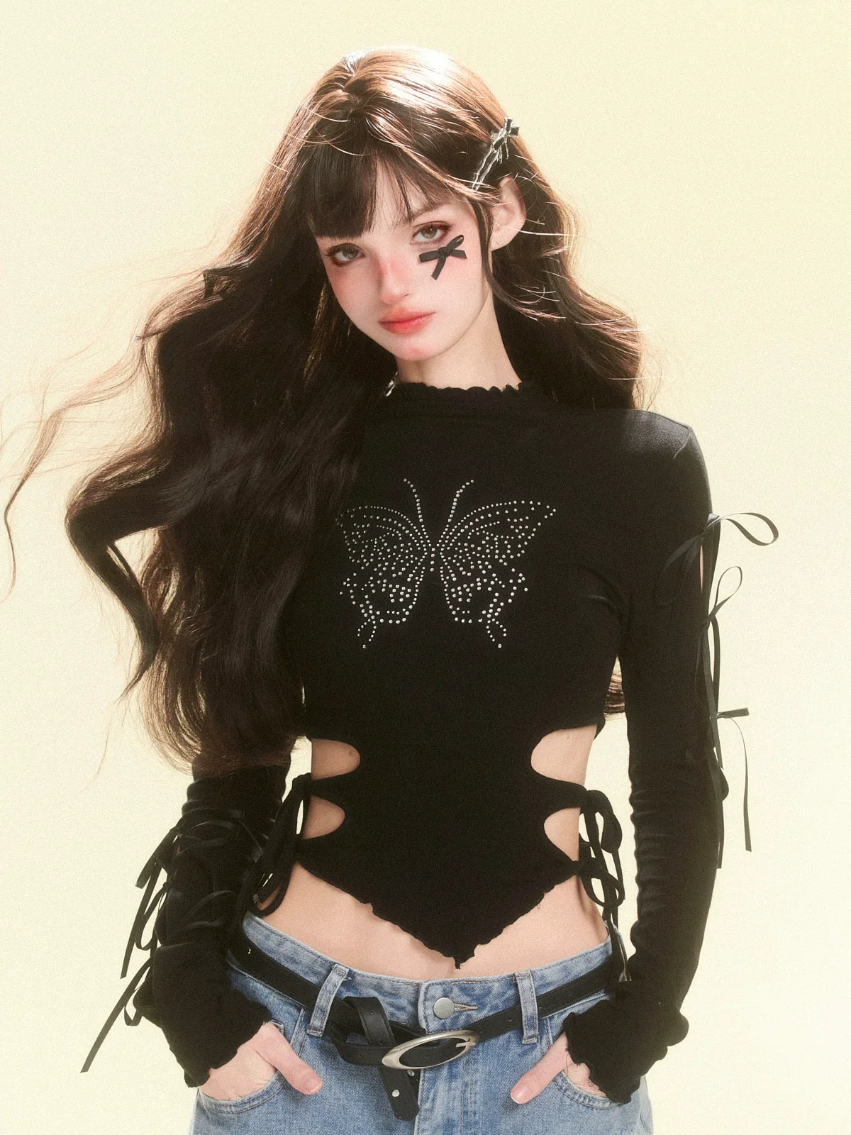 Tops Dunkles Design Schmetterling Schmale Taille