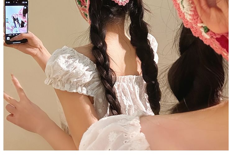 Dreieckiger Strick-Kopfschal mit Blumenmuster