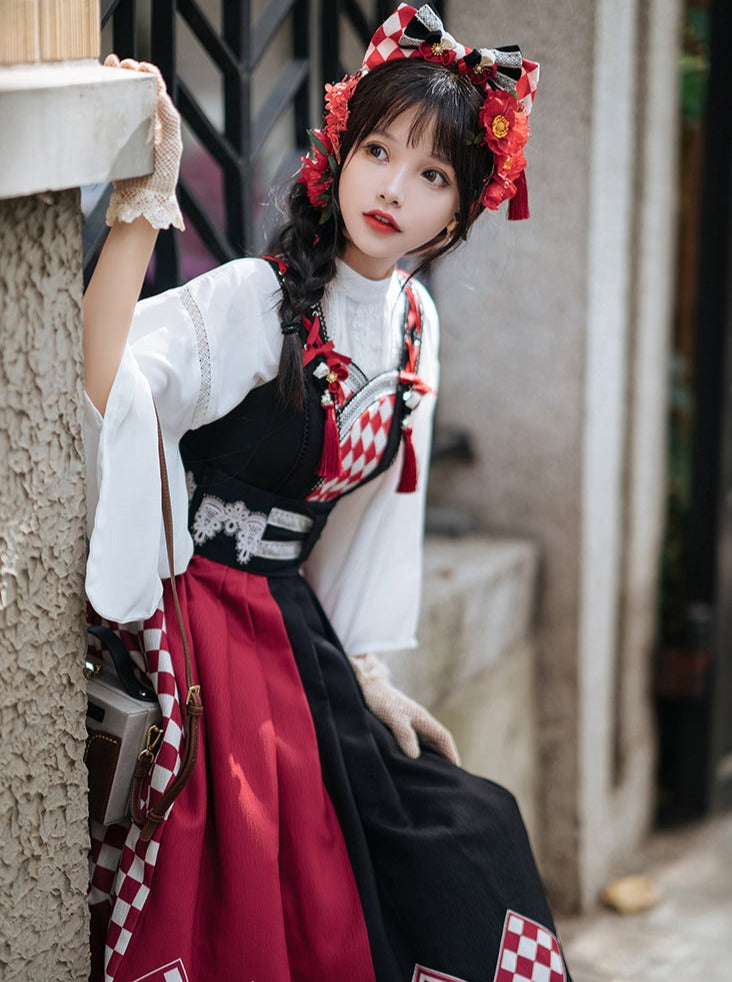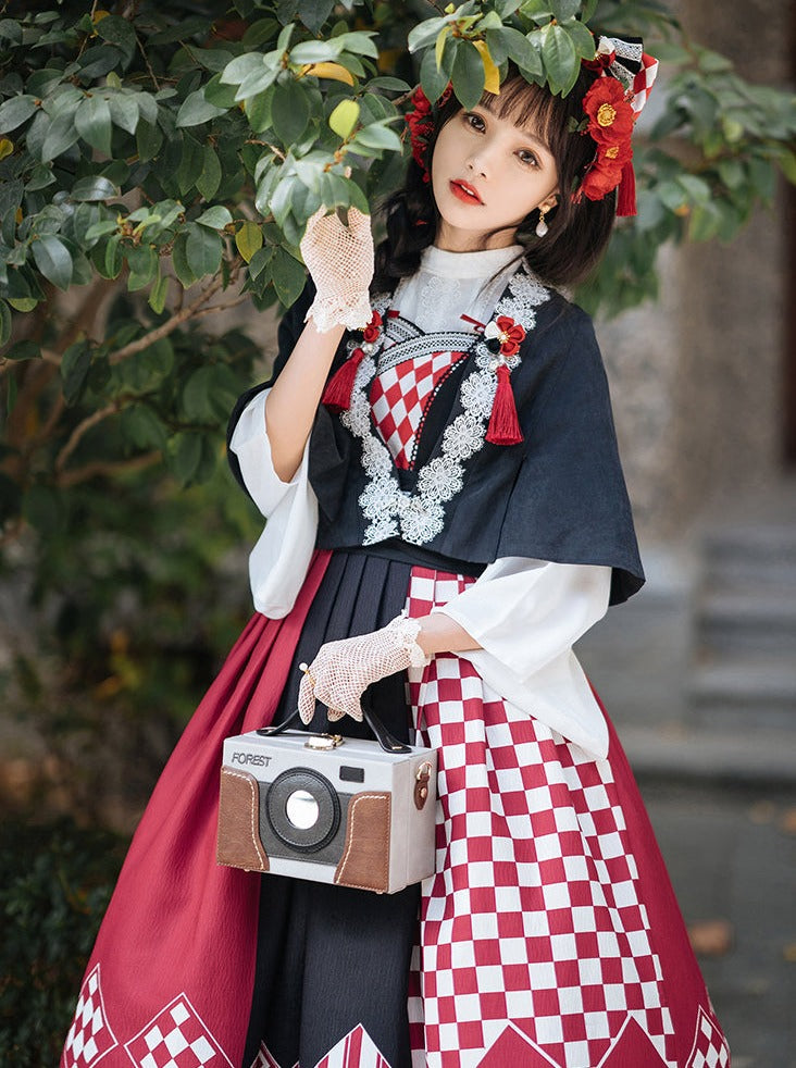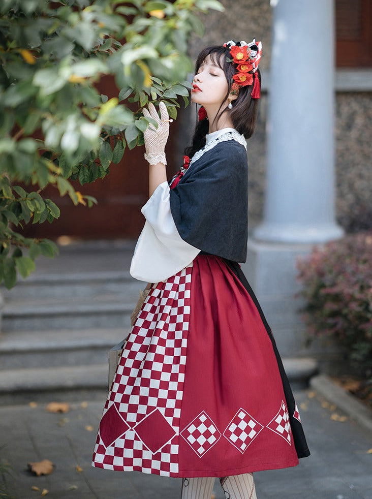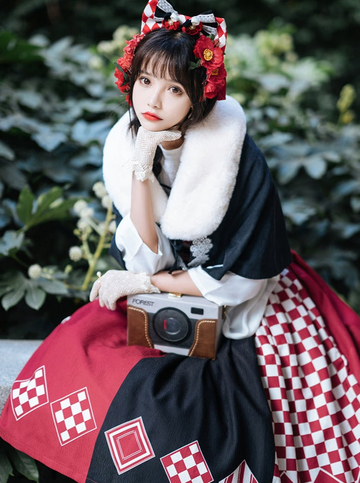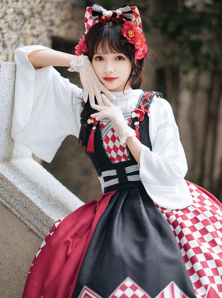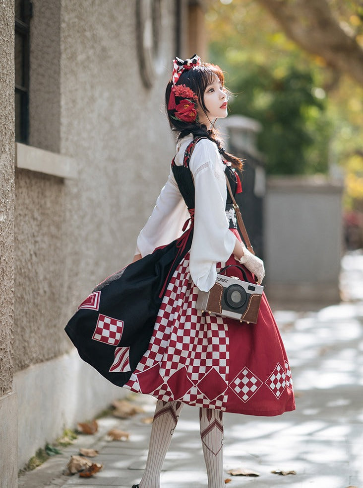 Schwarz-weißes Old School Lolita Fashion Kleid Bowknot Lolita JSK Set