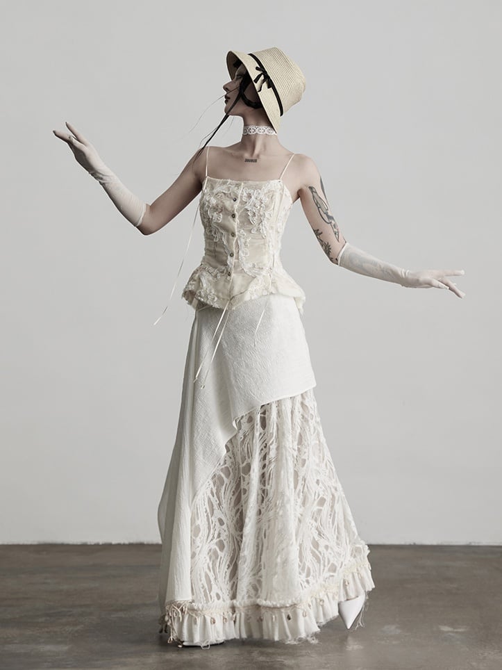 Tulle Umbrella Shawl Shell + Floral Charms Pattern White Skirt Urban Goth with