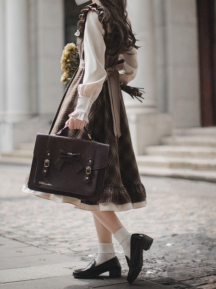 Schwarz-weißes Old School Lolita Fashion Kleid Bowknot Lolita JSK Set