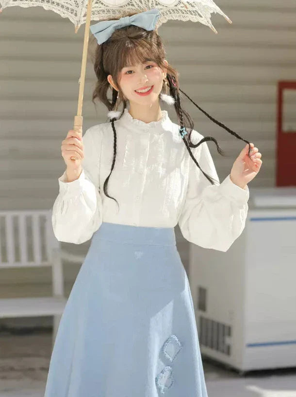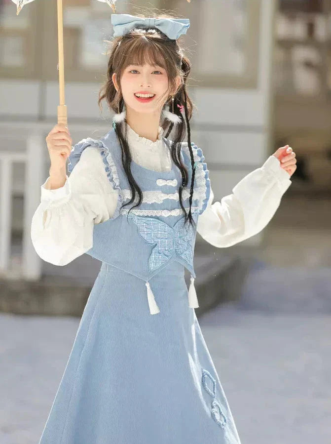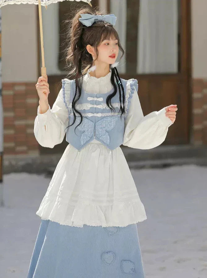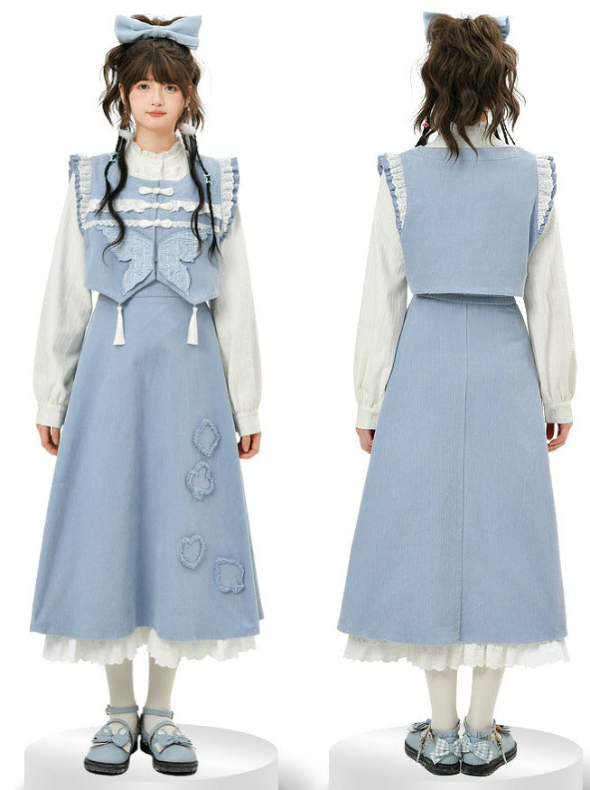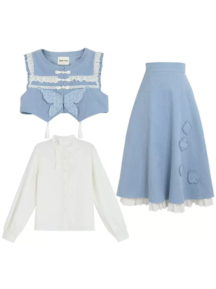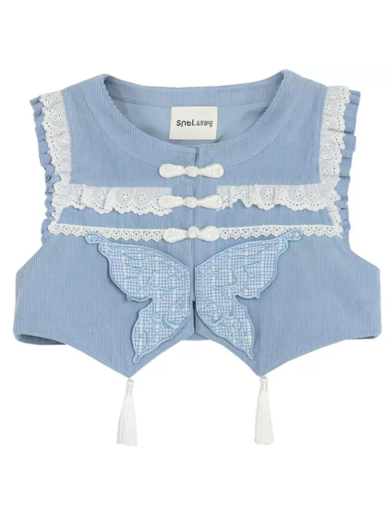 Weste Blau Wald Rüschen Schmetterling Rock China Blau Hemd