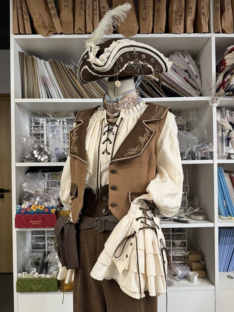Vibes Stickerei Pirat Lolita Ouji Zarte Weste Kaffee