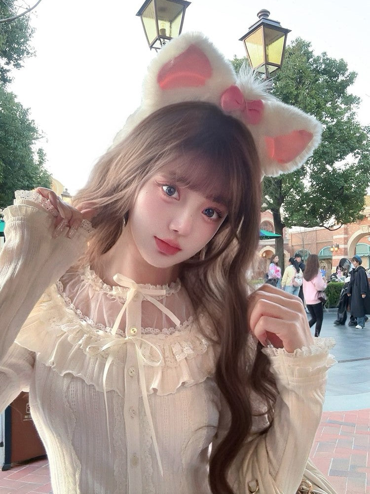 Vintage Weiße Schleife Rüschen Spitze Strick Cardigan