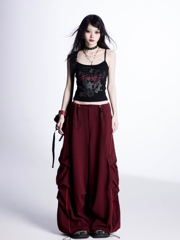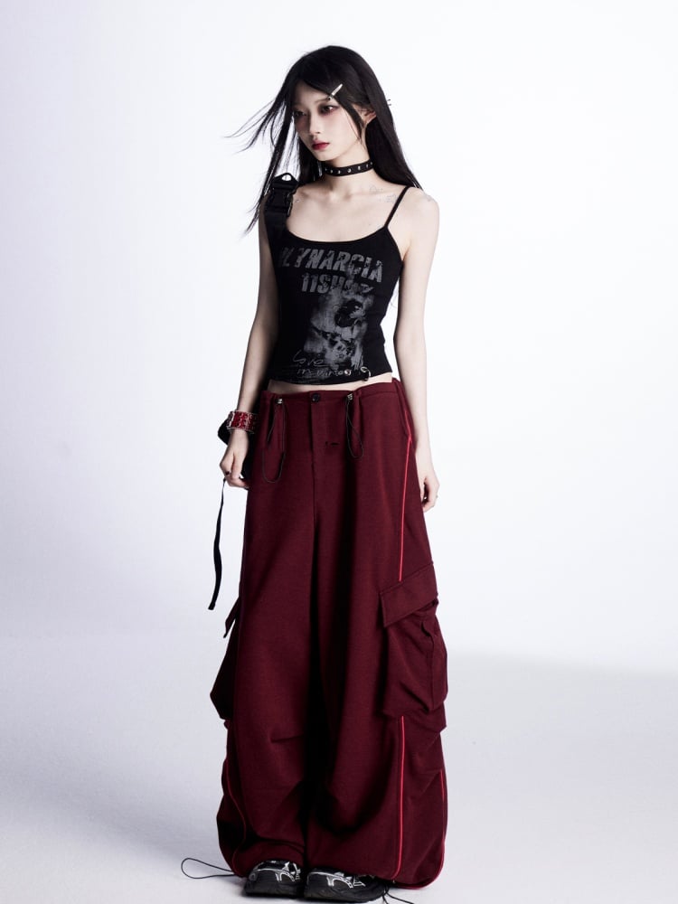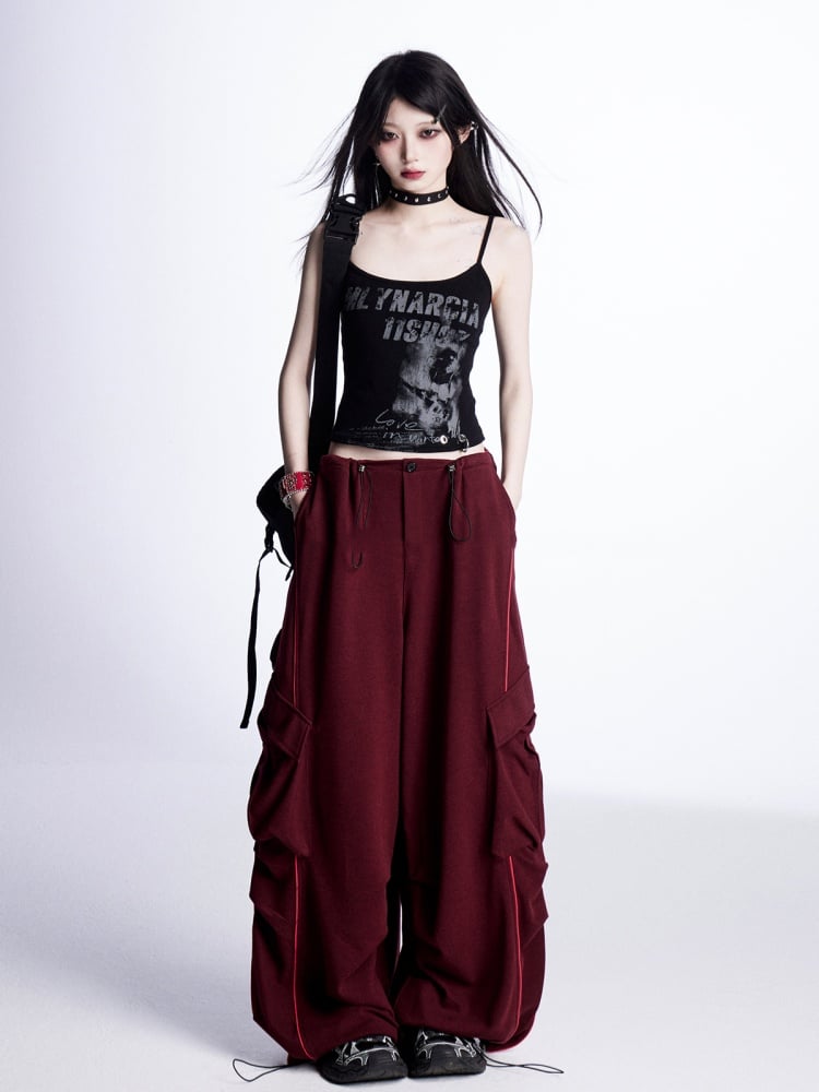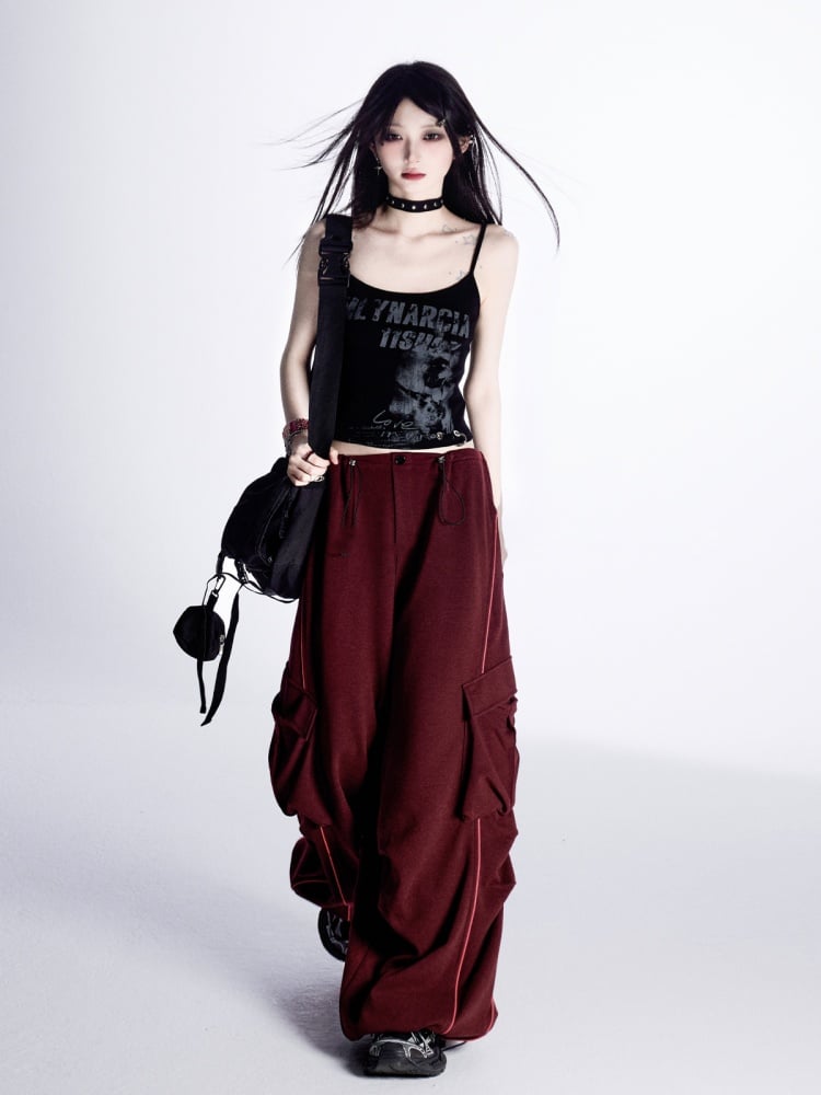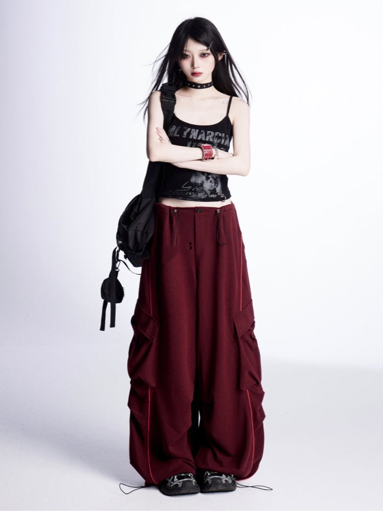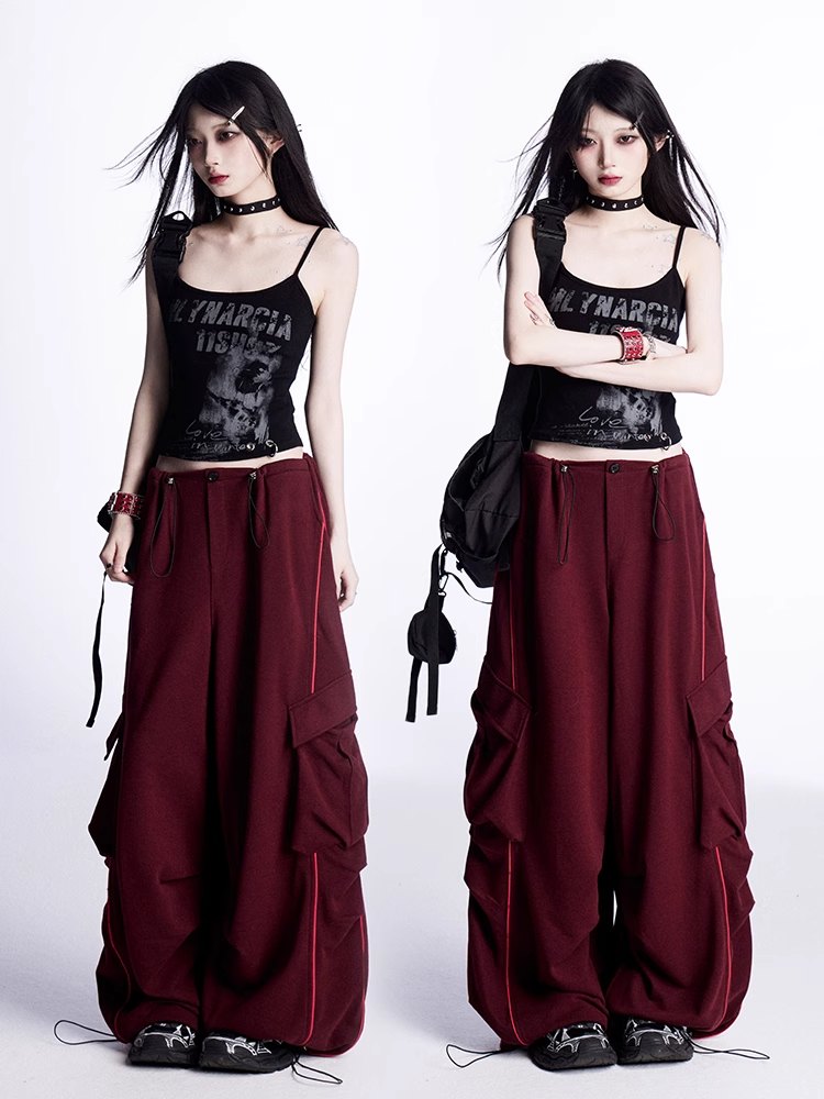 Rote Cargohose mit weitem Bein und niedriger Taille und Kordelzug an den Bündchen