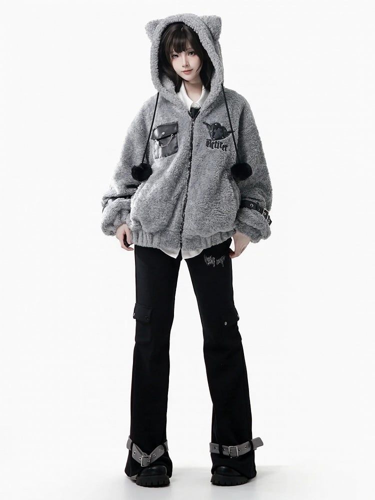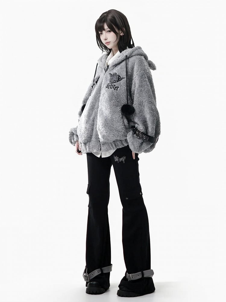 Gray Y2K Faux Fur Leg Warmers with Ribbon - AY To films