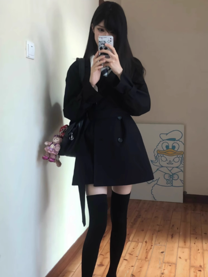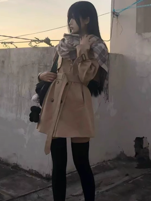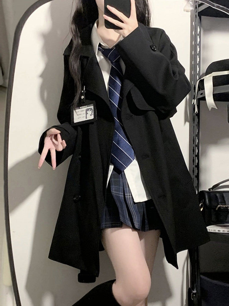 Schwarz/Khakifarbener Trenchcoat für JK-Uniform mit Taillengürtel