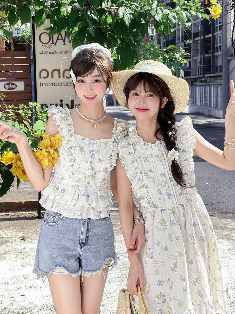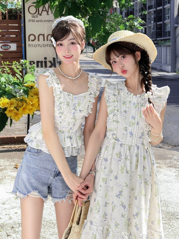 Blau-weißes Old School Lolita Fashion Kleid mit Schleife und Details, JSK-Set