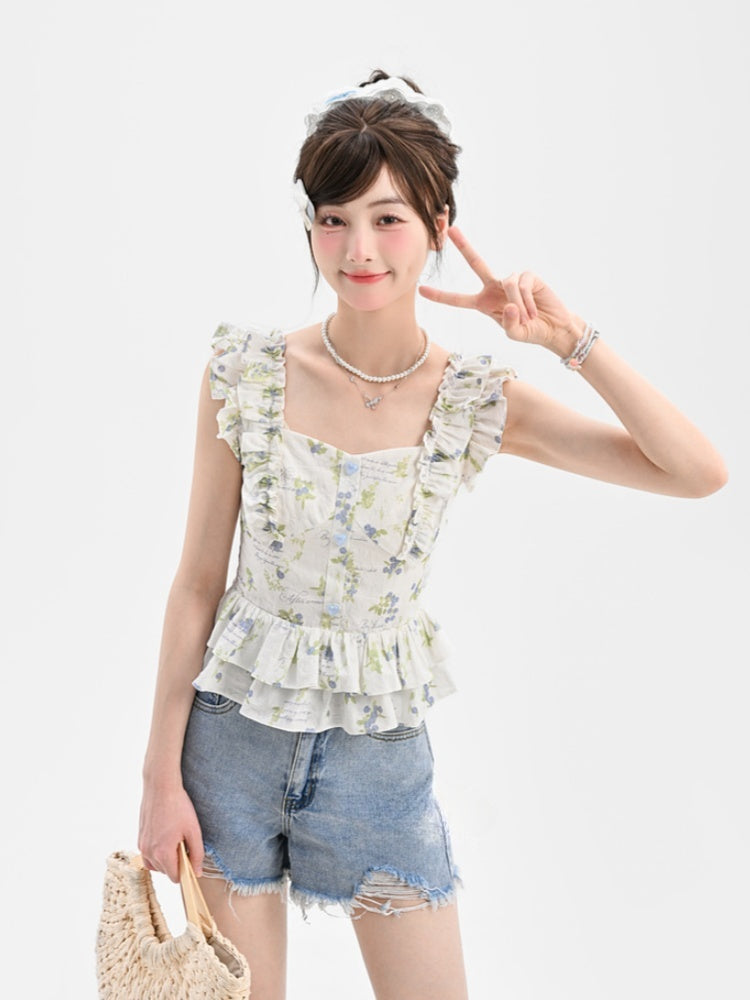 Blaue Jeansshorts mit hoher Taille und ungesäumtem Saum