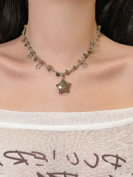 Verleihen Sie Ihrem Outfit mit unserer Wasteland Punk Sandstein-Sternanhänger Y2K-Halskette einen Hauch von Niedlichkeit. Der Sandstein-Sternanhänger verleiht dieser Y2K-inspirierten Halskette eine einzigartige Note und macht sie zu einem Must-have für alle Trendsetter. Werten Sie Ihren Stil mit diesem charmanten Accessoire auf.