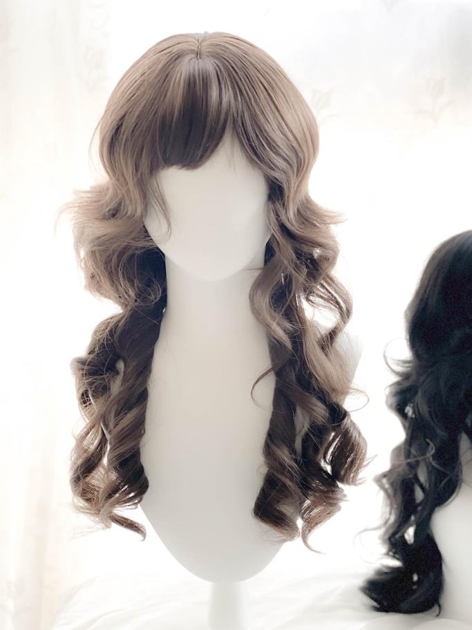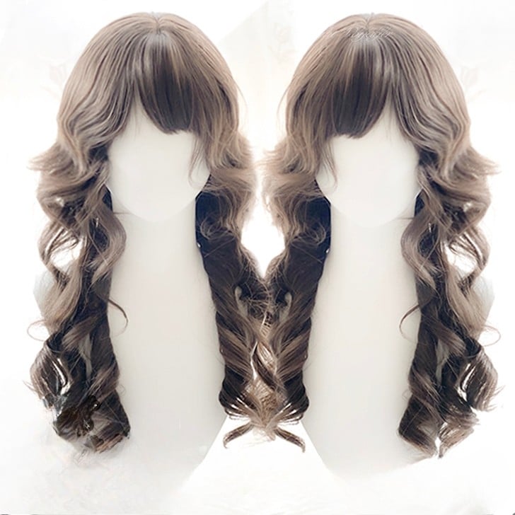 Braune, 70 cm lange, gewellte Perücke mit Pony