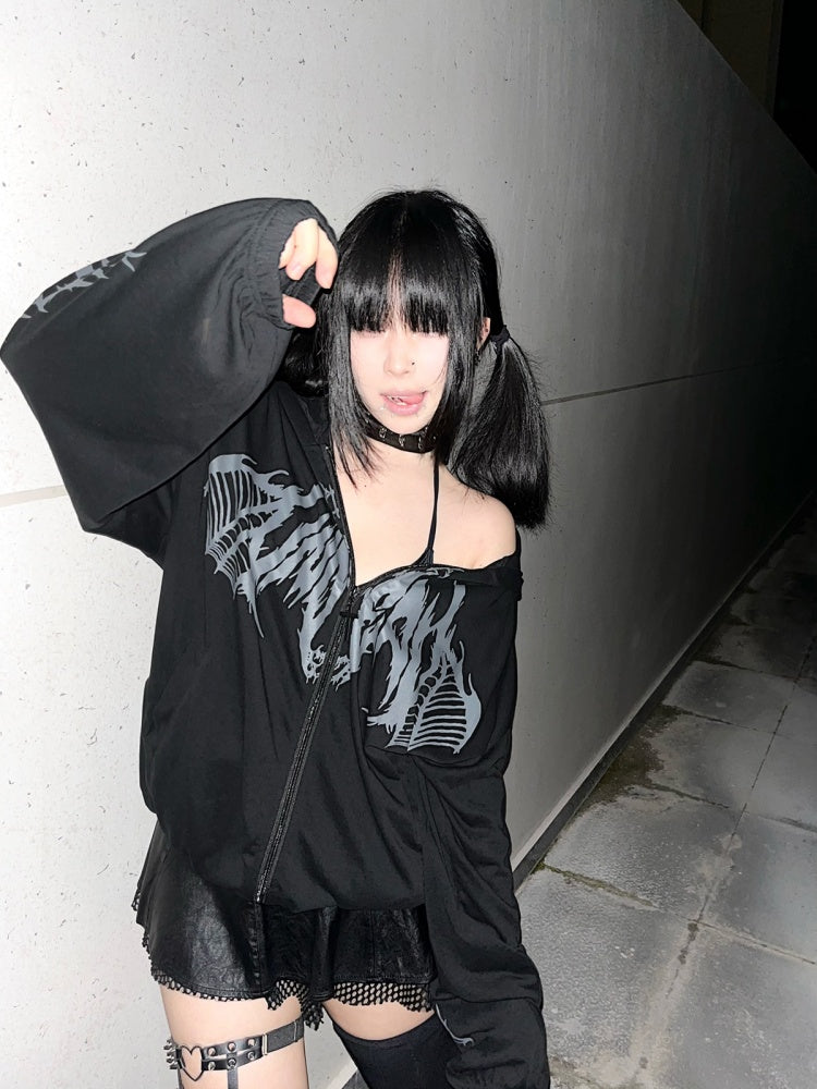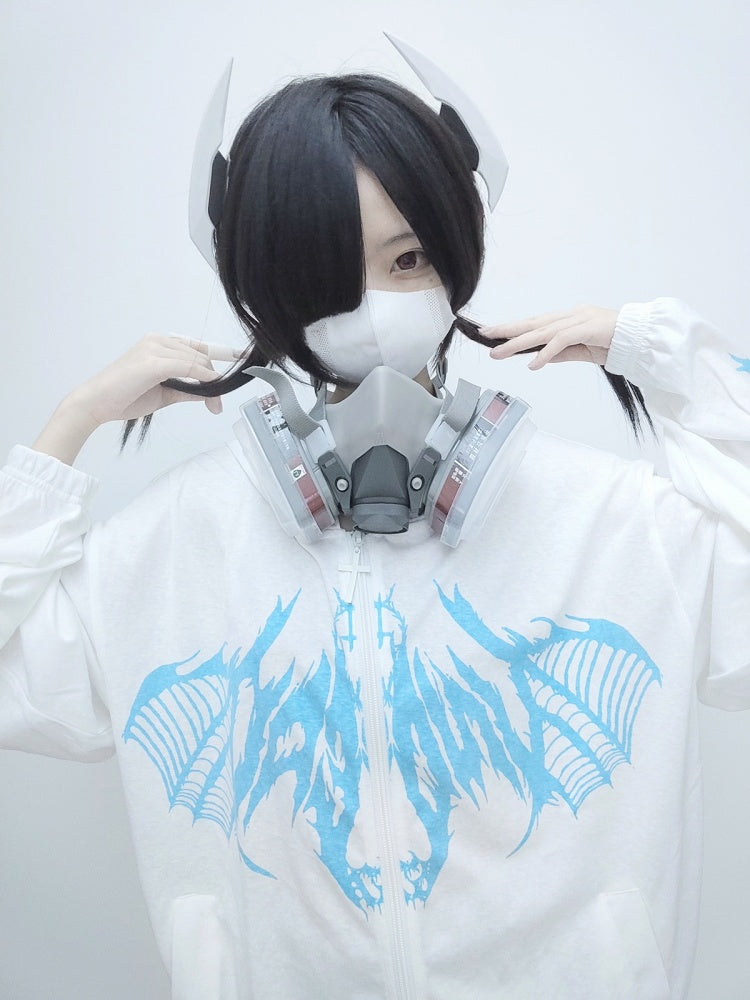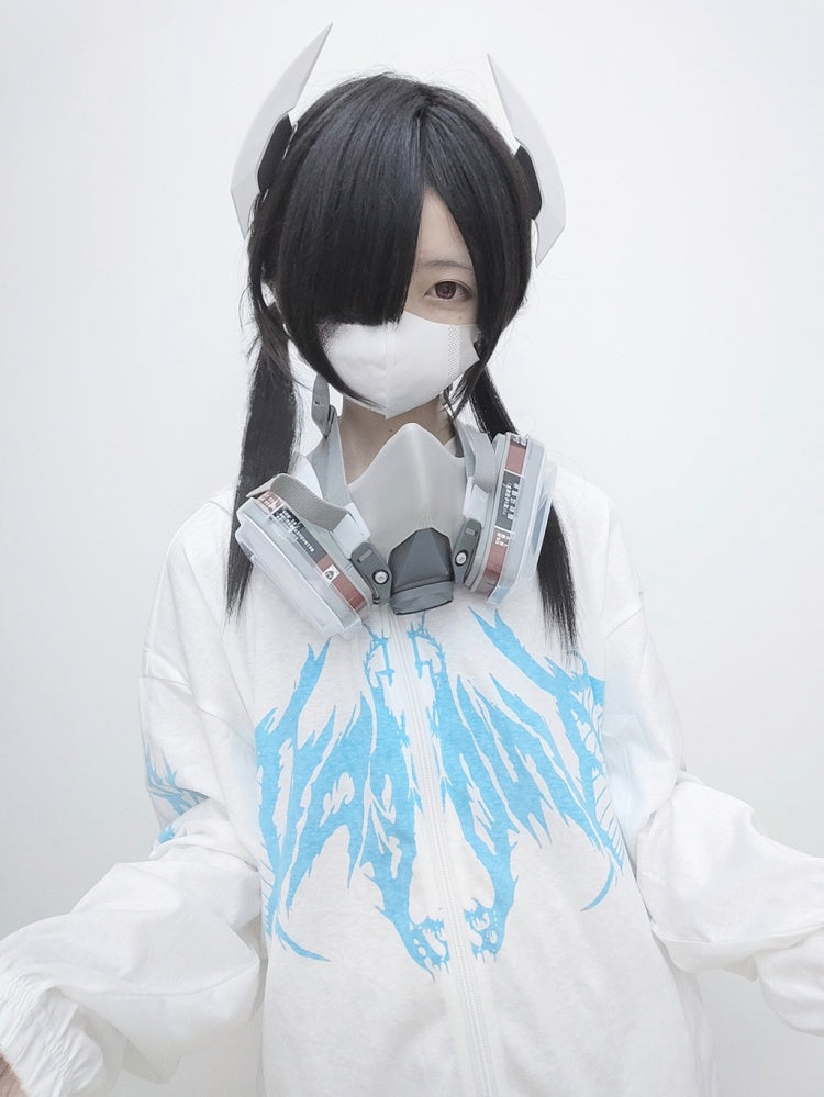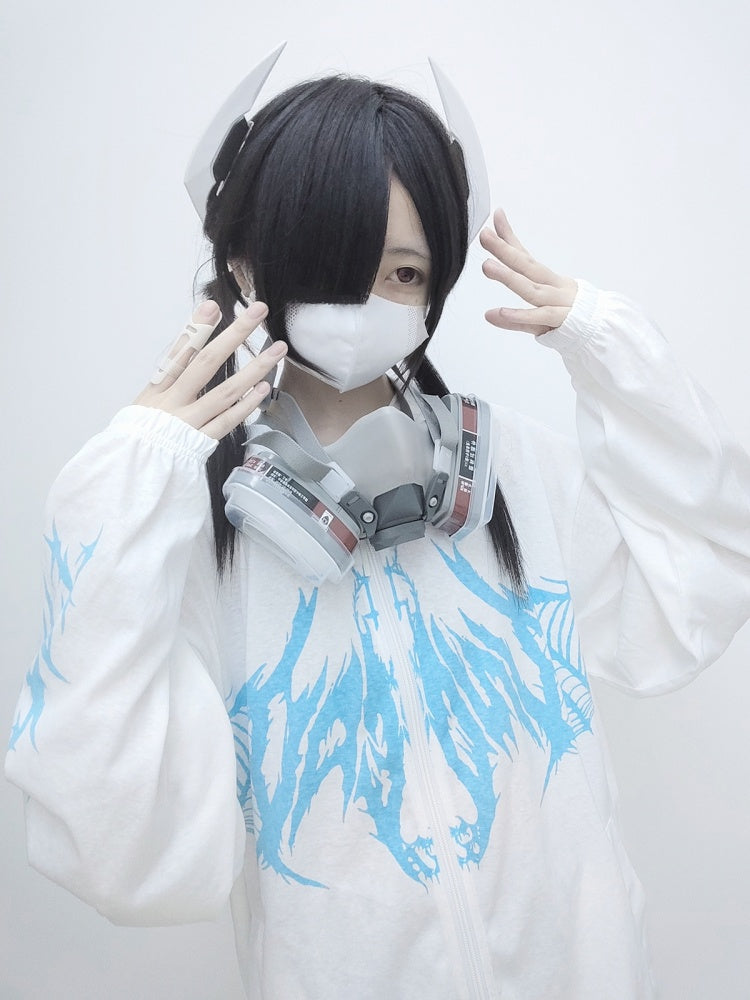 Weiß Schwarz Blau Sonnenschutz Y2K Kapuzenjacke
