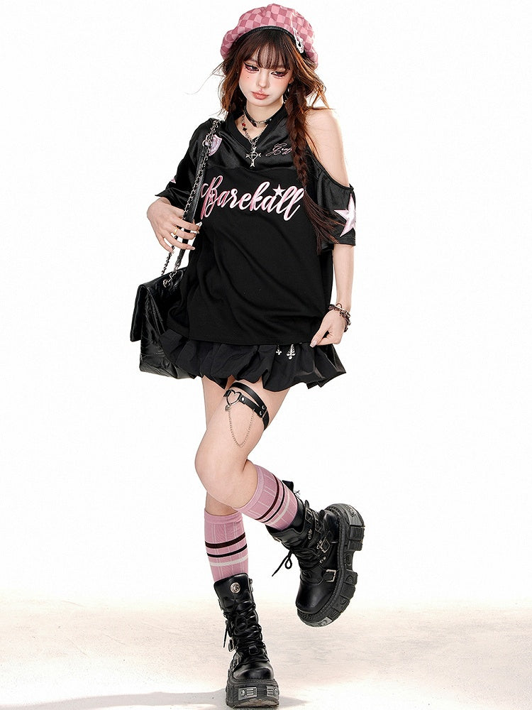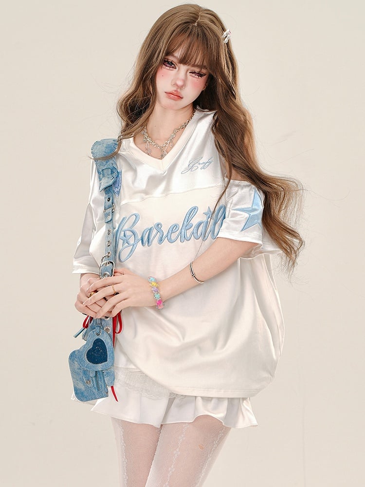 Dieses sportliche T-Shirt mit weiß-schwarzen Buchstaben und V-Ausschnitt ist perfekt für alle, die Wert auf Komfort und Stil legen. Das Cut-Out-Design verleiht einen verspielten Touch, während der V-Ausschnitt und der sportliche Look es vielseitig für jeden Anlass machen. Zeigen Sie Ihre süße Seite mit diesem Shirt!