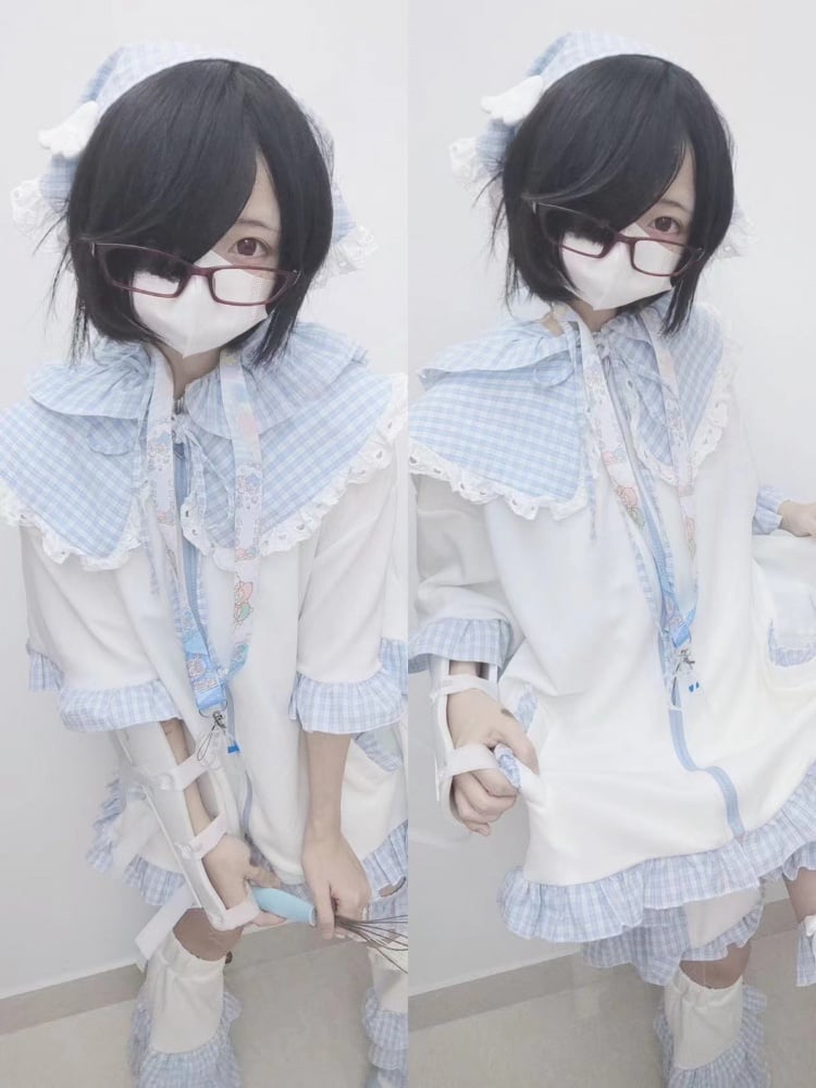Blau-weißes Old School Lolita Fashion Kleid mit Schleife und Details, JSK-Set