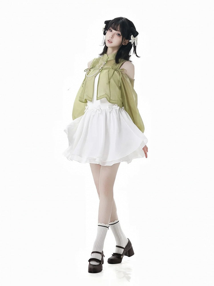 Weißes Unterkleid mit Schleifendetails, kurze/lange Version